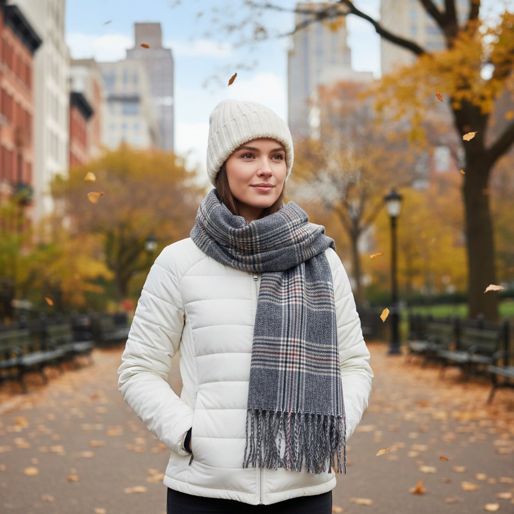Kostkovaný design zajišťuje, že šála je vhodná pro každou příležitost. Snadná údržba