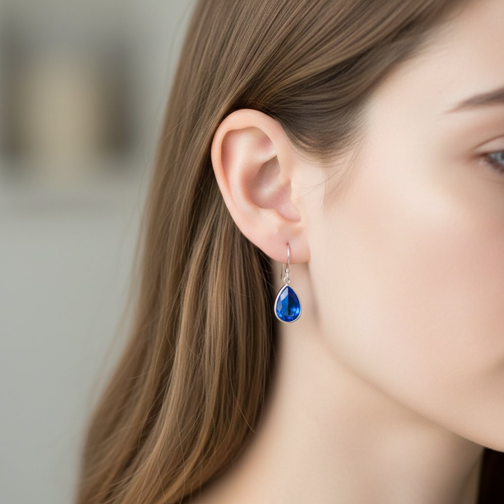 Tmavě modrá barva a tvar slzy dodávají náušnicím jedinečný a elegantní vzhled. Lehkost a pohodlí