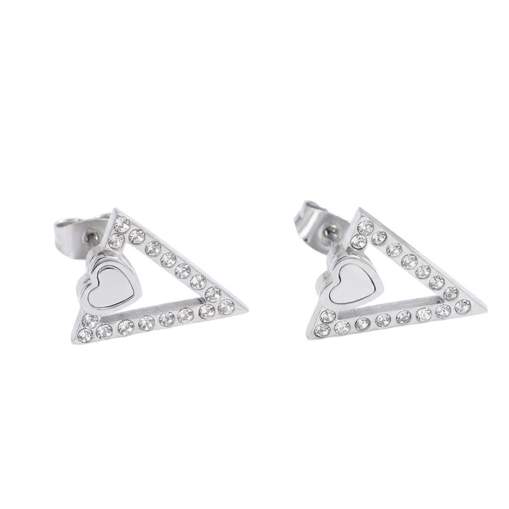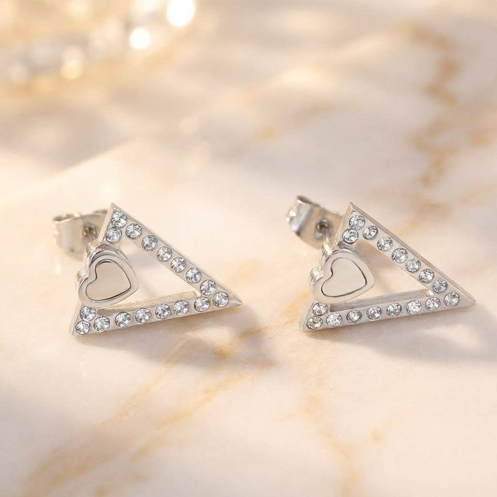 Tyto náušnice jsou perfektním doplňkem pro každodenní outfity i výjimečné události. Jejich romantický charakter podtrhuje srdce uvnitř trojúhelníku, které dodá vašemu stylu jedinečný šarm.