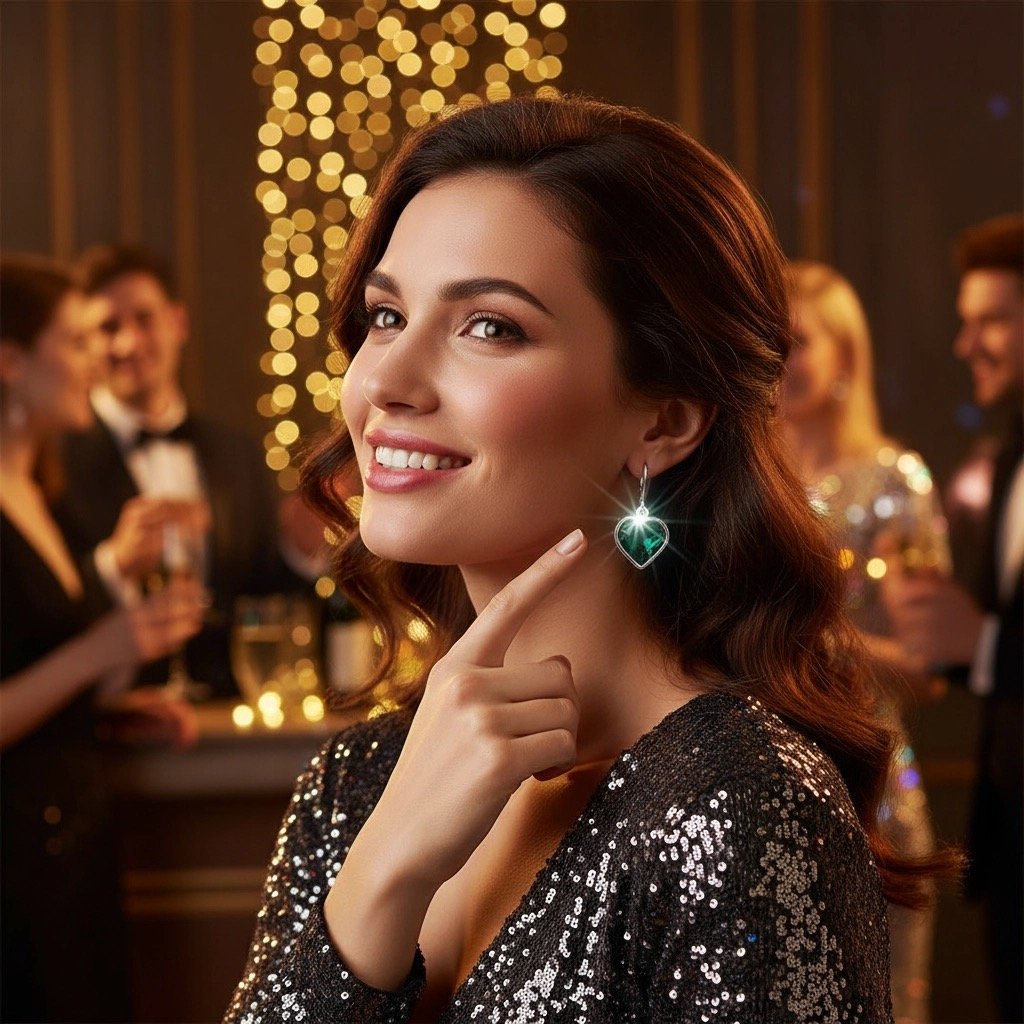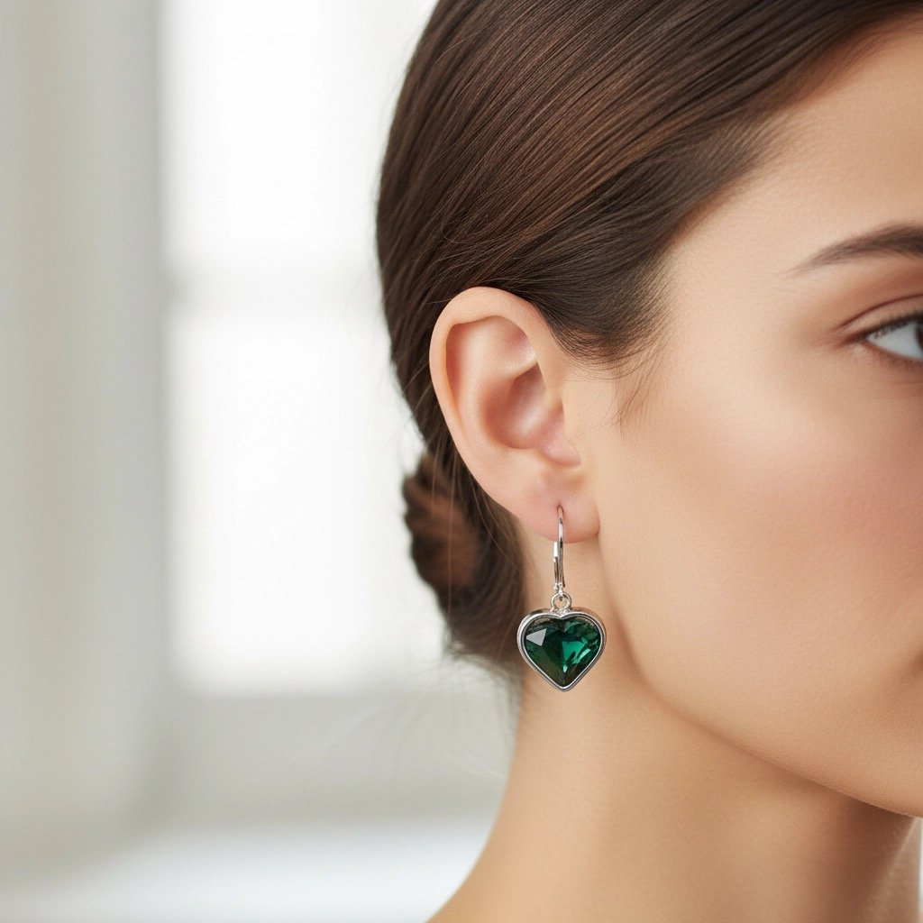 Zelené náušnice srdíčko z chirurgické oceli SD755 + dárkové balení