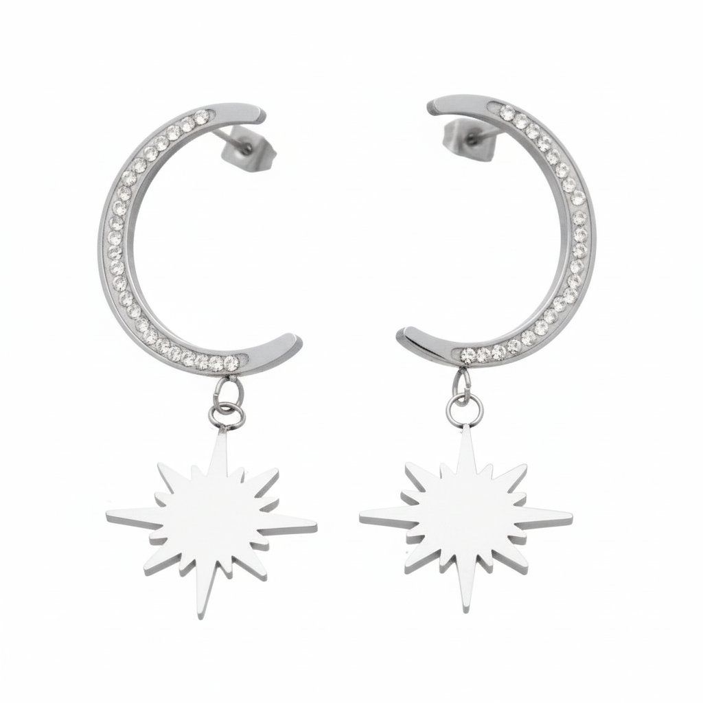 Unikátní tvar měsíce a hvězdy s třpytivými zirkony dodává náušnicím šmrnc a půvab.Ručně dohotovené