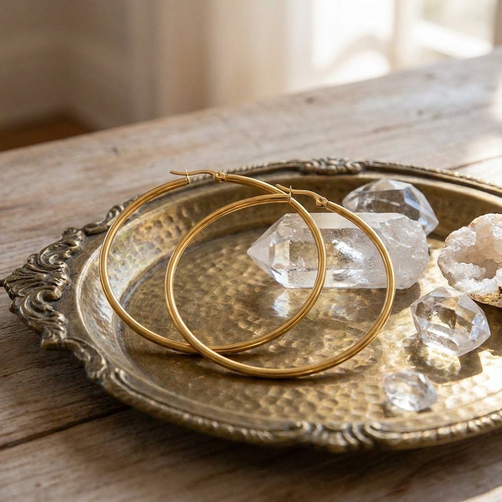 Toužíte po eleganci? Naše zlaté ocelové kruhy jsou vyrobeny z chirurgické oceli, která zaručuje dlouhou životnost. Jejich jemný lesk a precizní zpracování přidají vašemu stylu nádech luxusu.
