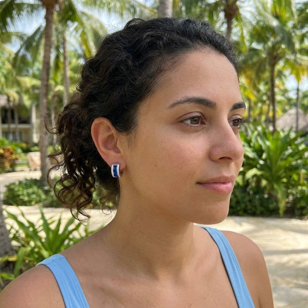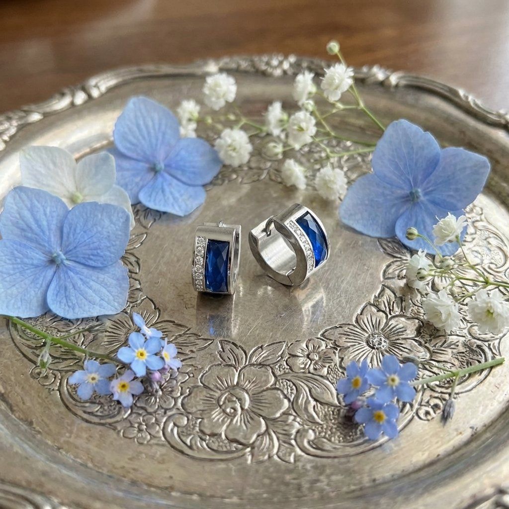 - náušnice ocel se skleněným proužkem a drobnými krystalky