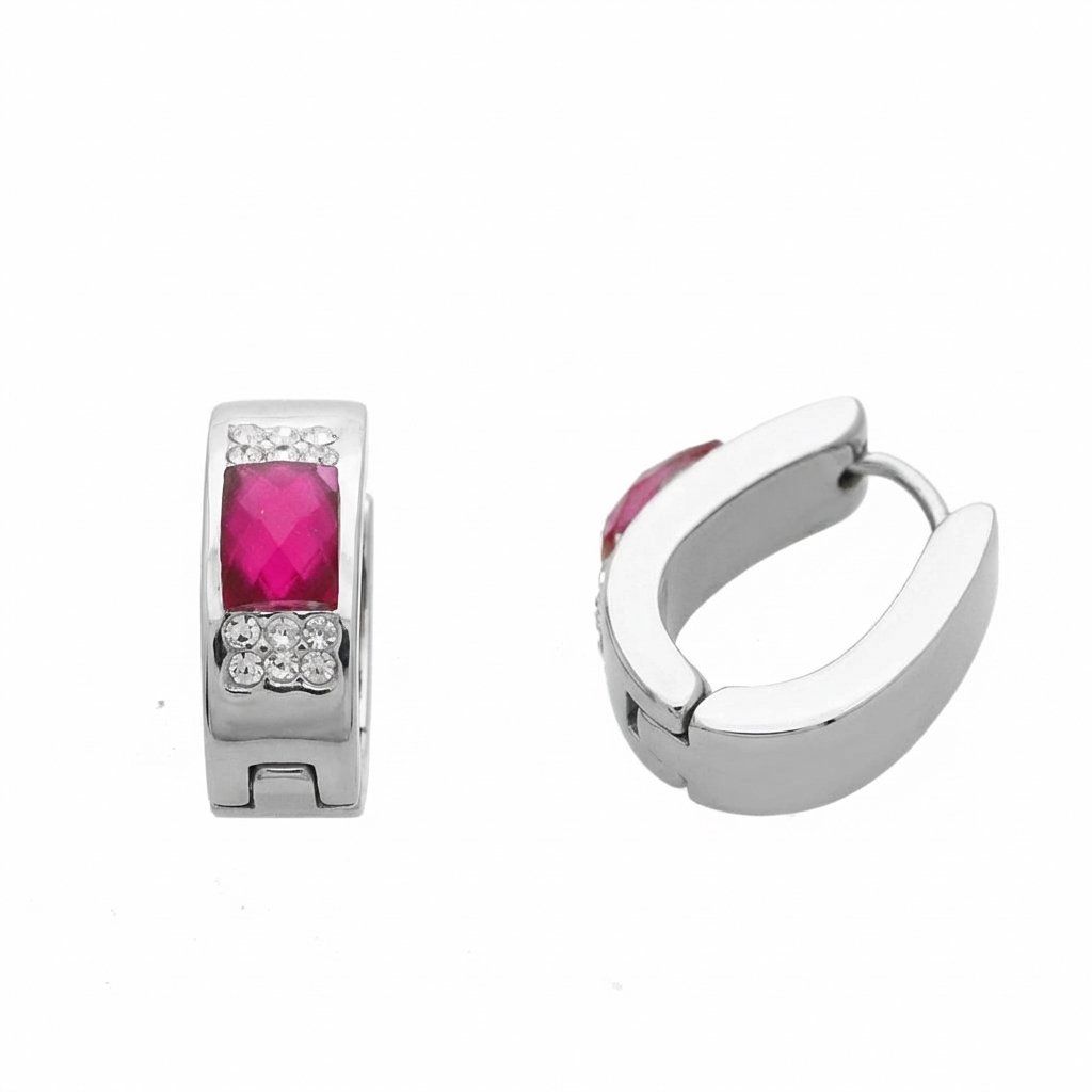 Náušnice ocelové ve tvaru U se skleněným proužkem růžová + dárkové balení