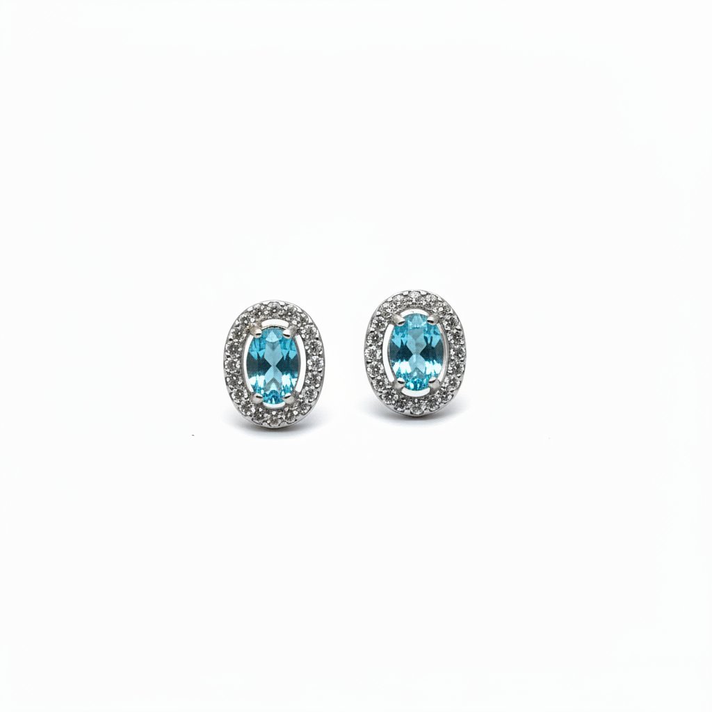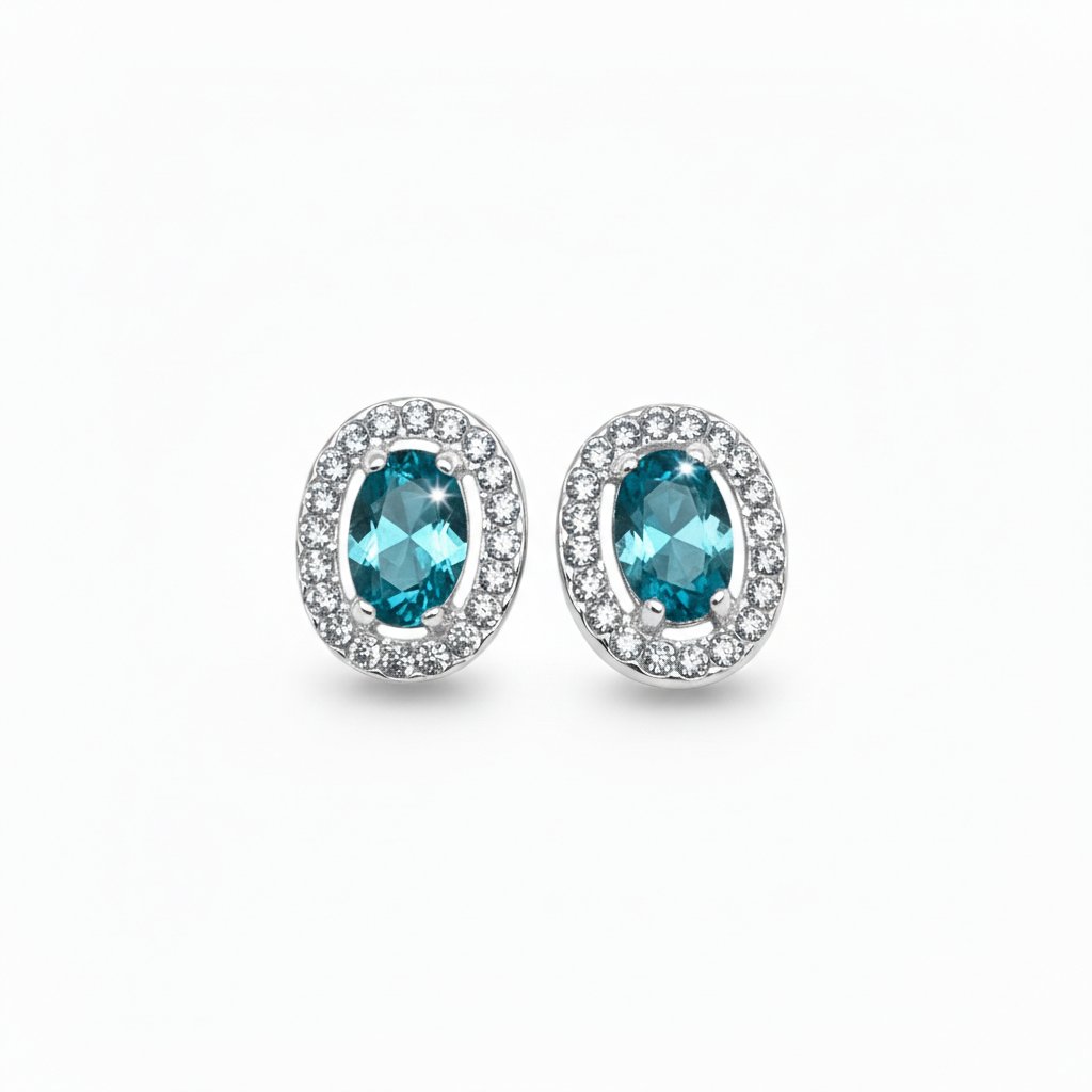 Akvamarínové náušnice ve tvaru ovál z chirurgické oceli zdobené krystaly, uprostřed broušené barevné sklo.Pěkné, stylové, úžasně odrážejí světlo, vhodné pro každý den. Délka 1 cm, šířka 9mm.