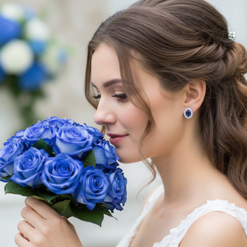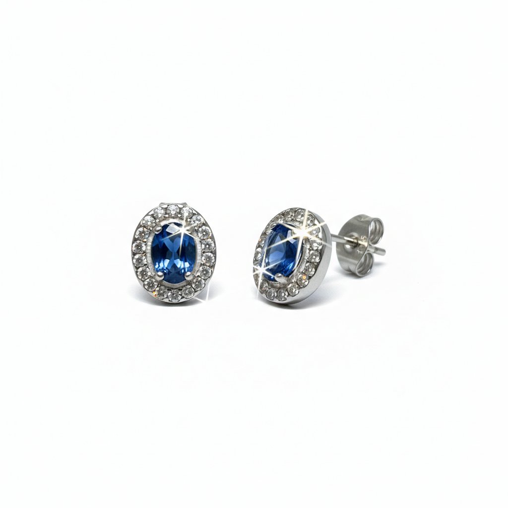 Ocelové náušnice s modrým zirkonem -Nerina-EW 326