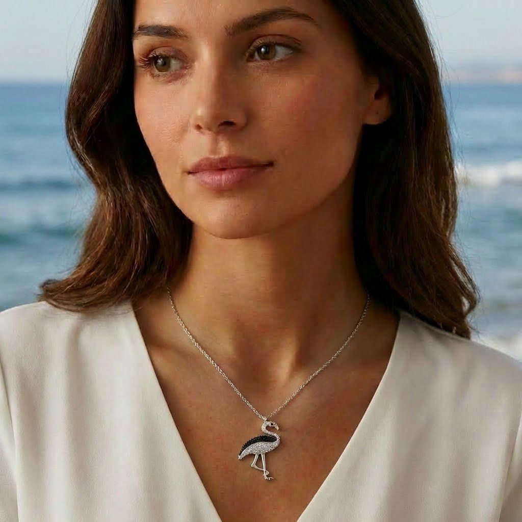 Je velice univerzální, hodí se do výstřihů halenek, šatů i k tričkům. Je zavěšený ve středu jemného očkového řetízku.