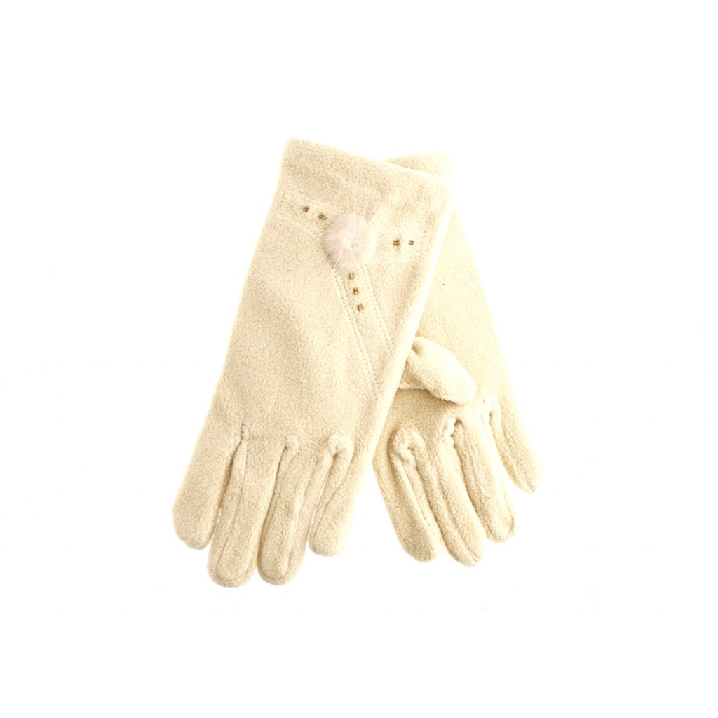 Dámské froté rukavice s bambulou a drobnými korálky béžové