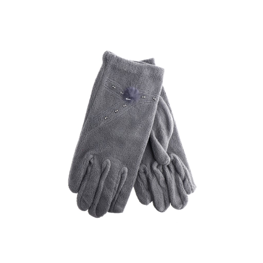 Dámské froté rukavice s bambulou a drobnými korálky šedé