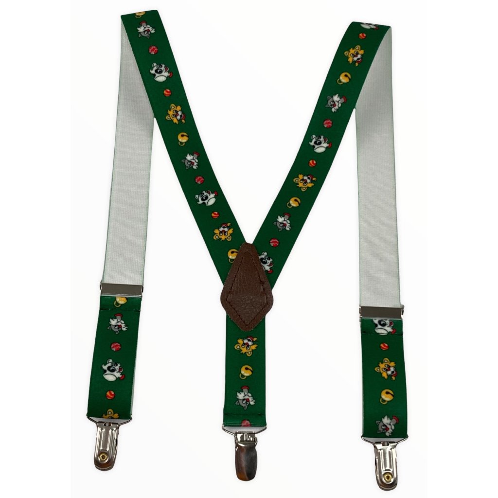 Dětské šle - šířka 2,5 CM s motivem. Dětské šle (kšandy) české výroby ze 100% polyesteru. Provedení je ve tvaru „Y“ a upevňují se ke kalhotám pomocí kovových žabek. Šířka popruhů činí 2,5cm a délka 60 cm. Díky její nastavitelnosti lze tyto šle použít pro výšku postavy od 100 cm do 120 cm.