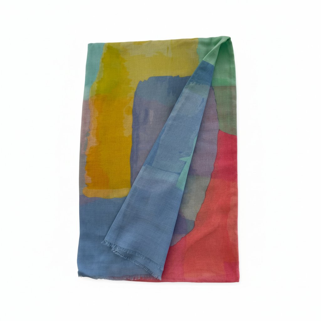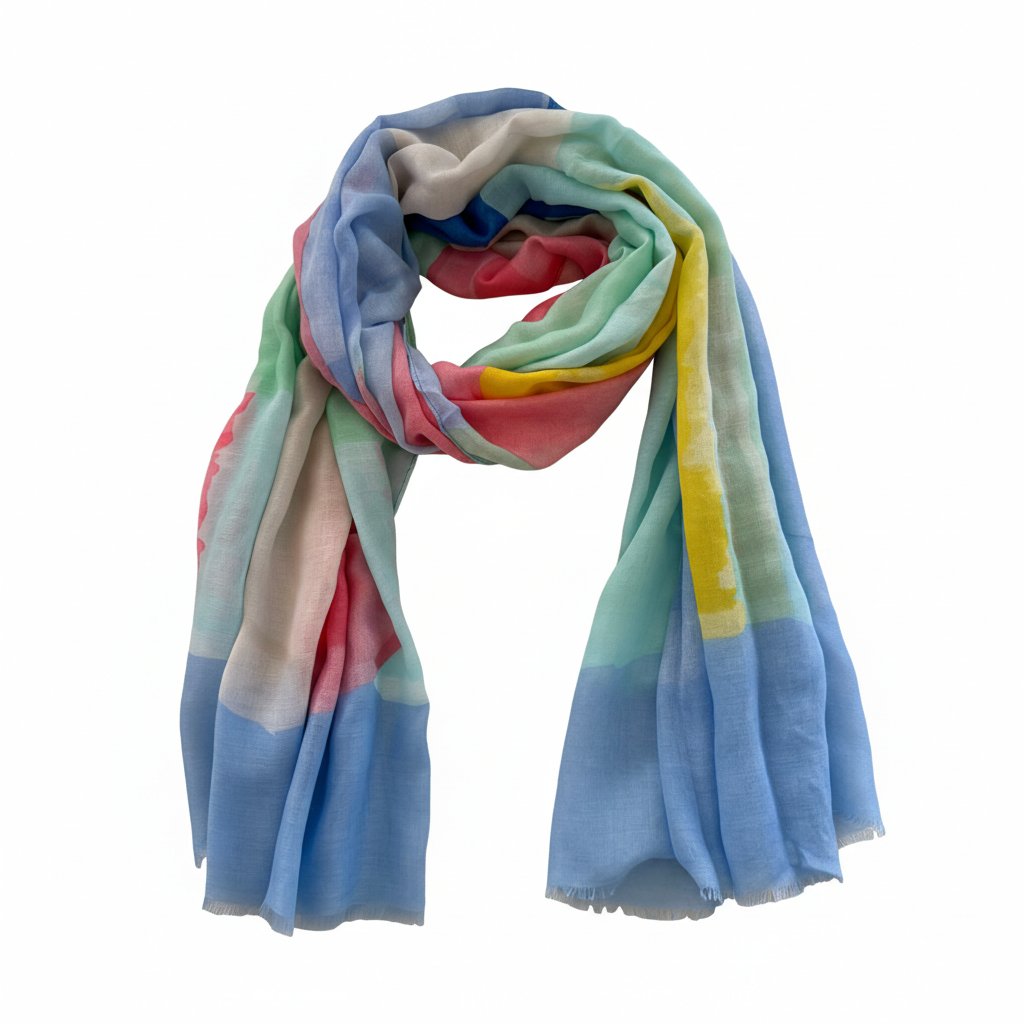 Šátek je lehký a snadno přenosný, ideální pro cestování nebo jako denní doplněk do kabelky. Výrazné barvy