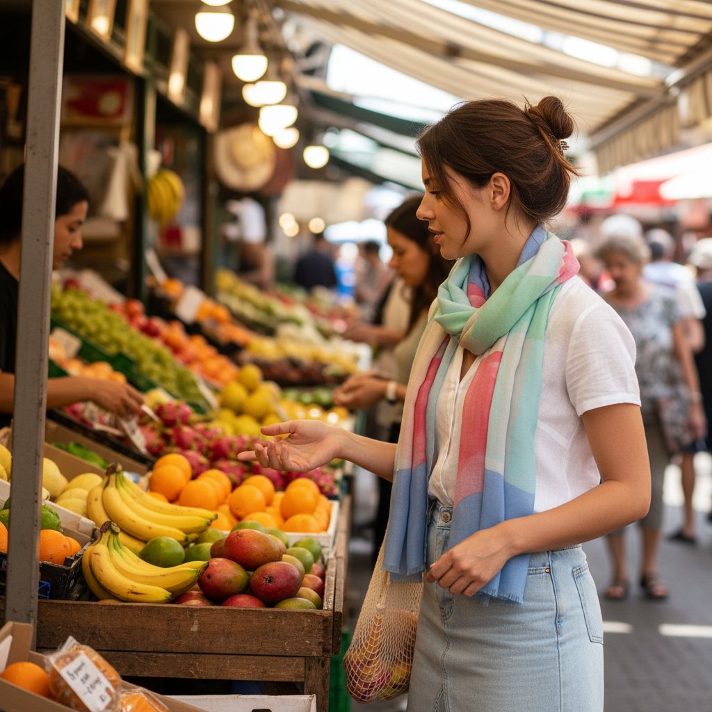Šátek lze nosit na mnoho způsobů – jako šálu, šátek nebo pléd, což umožňuje snadnou kombinaci s různými outfity. Šetrnost k pokožce