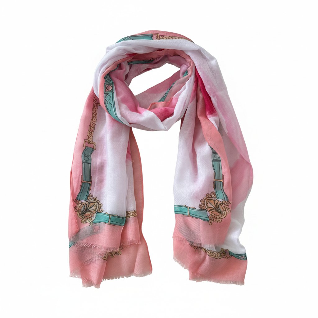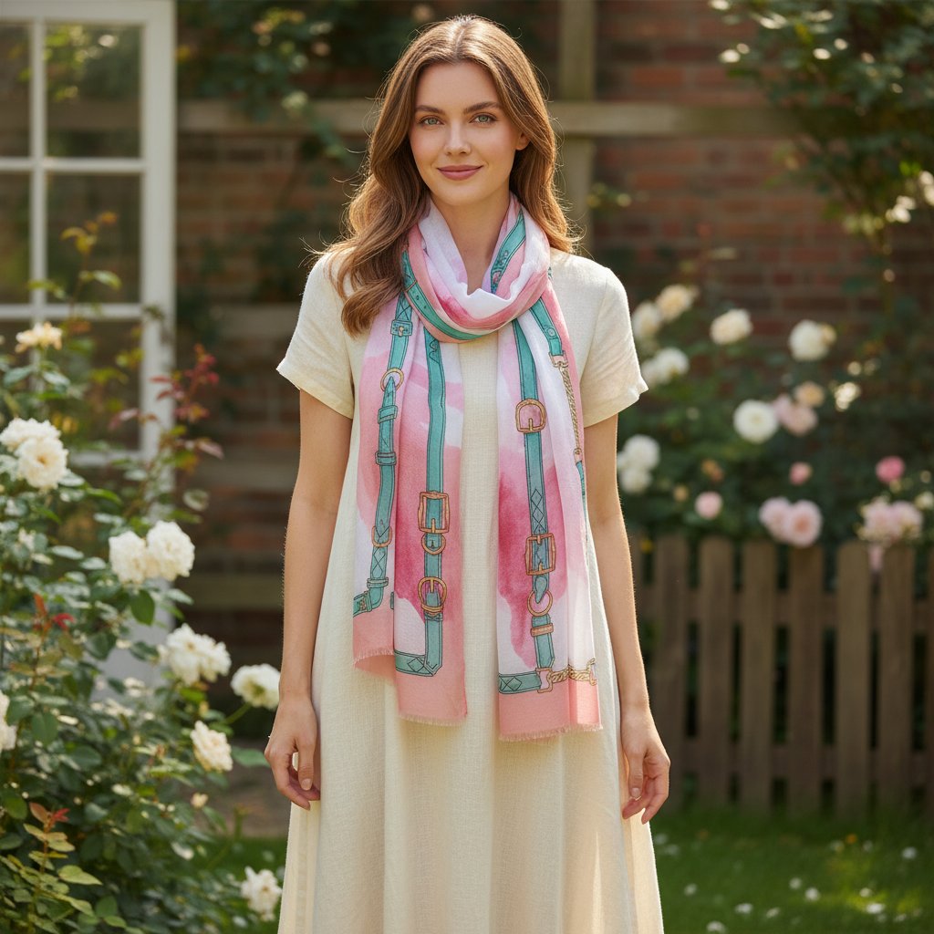 Barevný lem připomínající řetízky dodává šátku moderní a luxusní vzhled. Různorodé nošení
