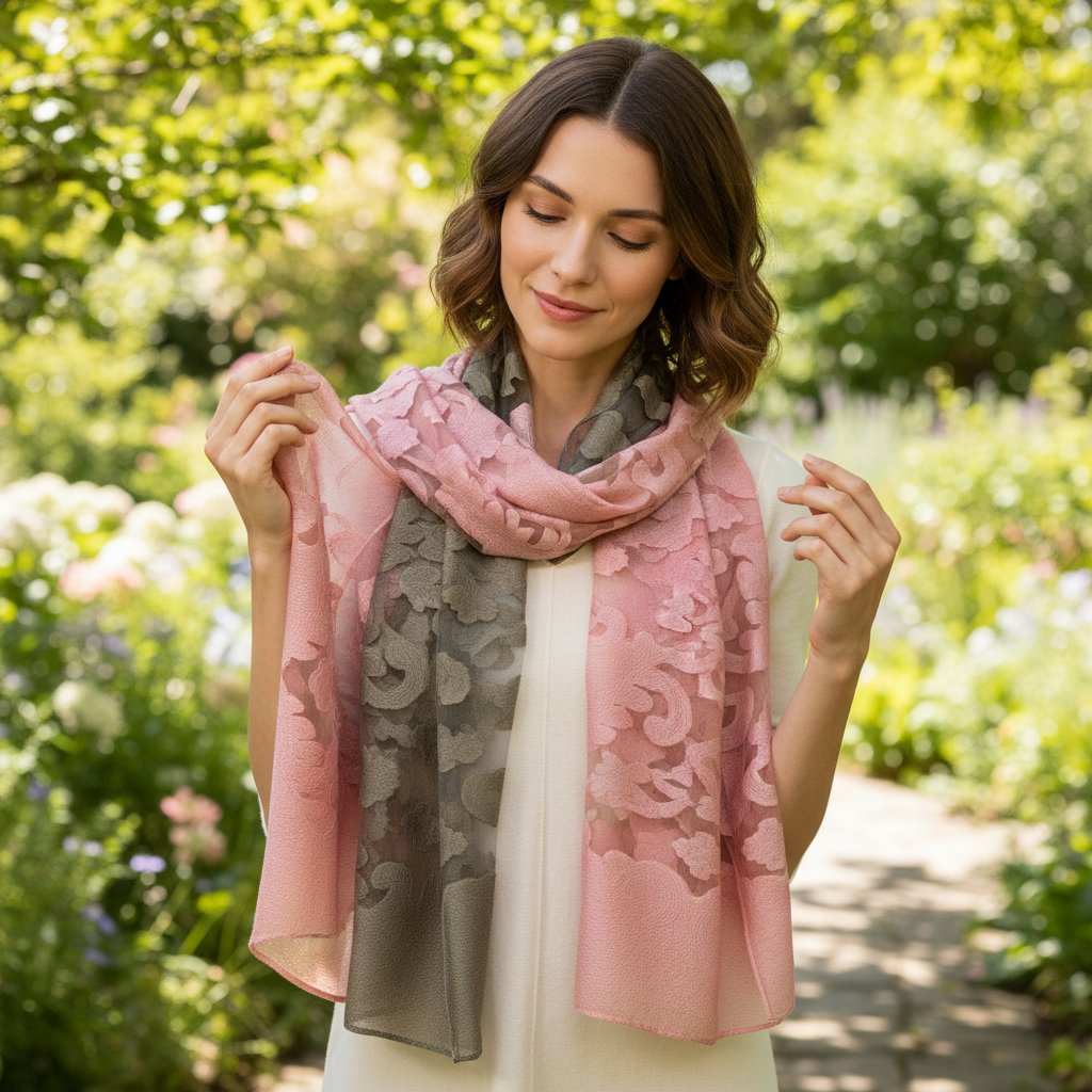 Rozměry umožňují různé způsoby vázání a kombinace s oblečením. Jemná průsvitnost