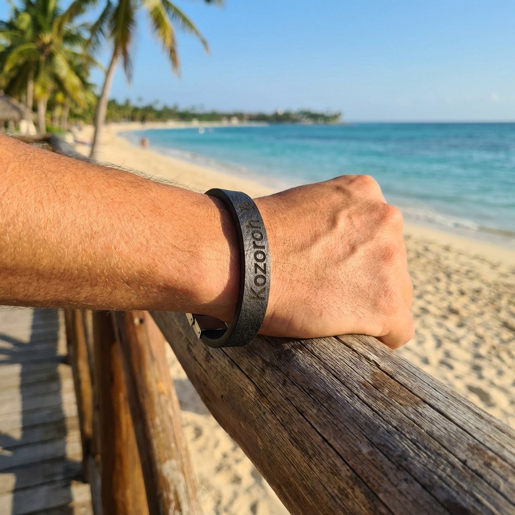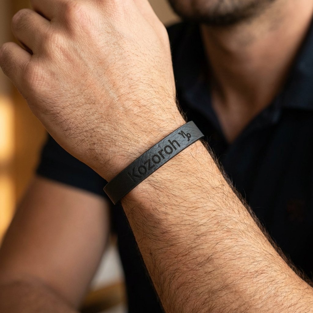 Pánský kožený náramek černý se znamením Kozoroh + dárkové balení