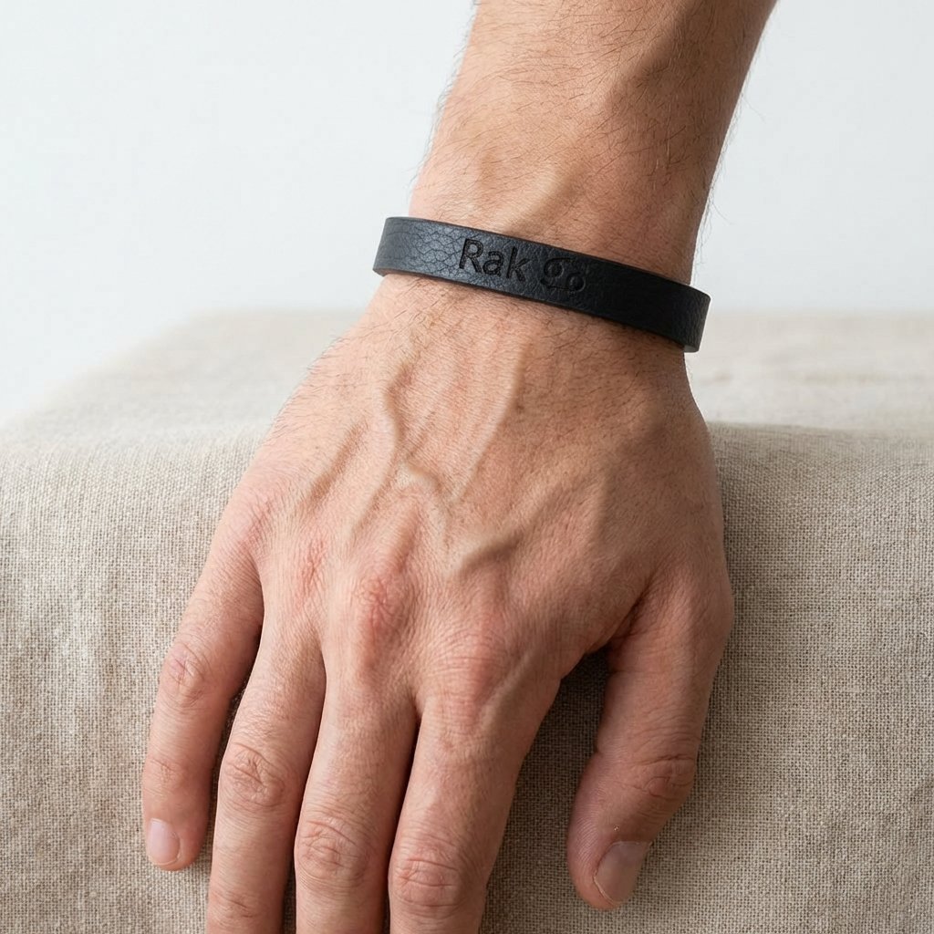 Pánský kožený náramek černý se znamením Rak + dárkové balení