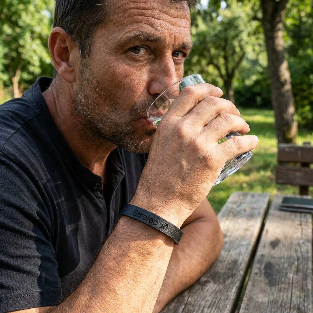 Pánský kožený náramek černý se znamením Strelec + dárkové balení