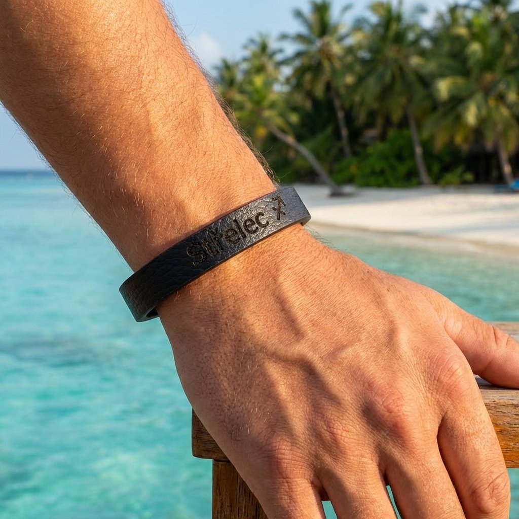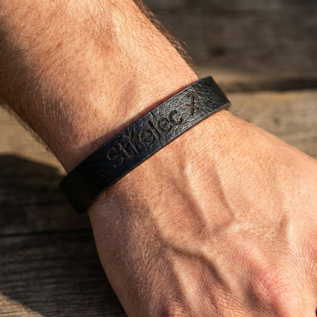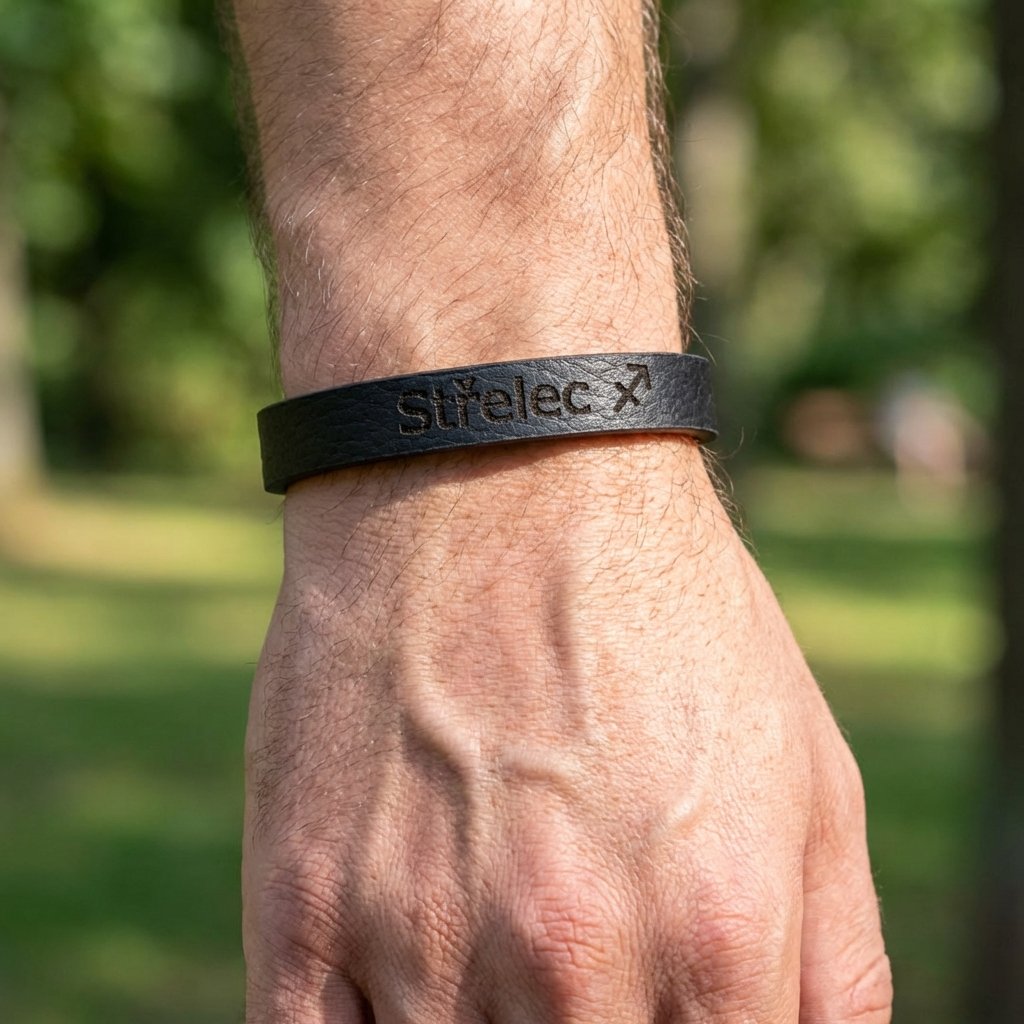 Pánský kožený náramek černý se znamením Střelec + dárkové balení