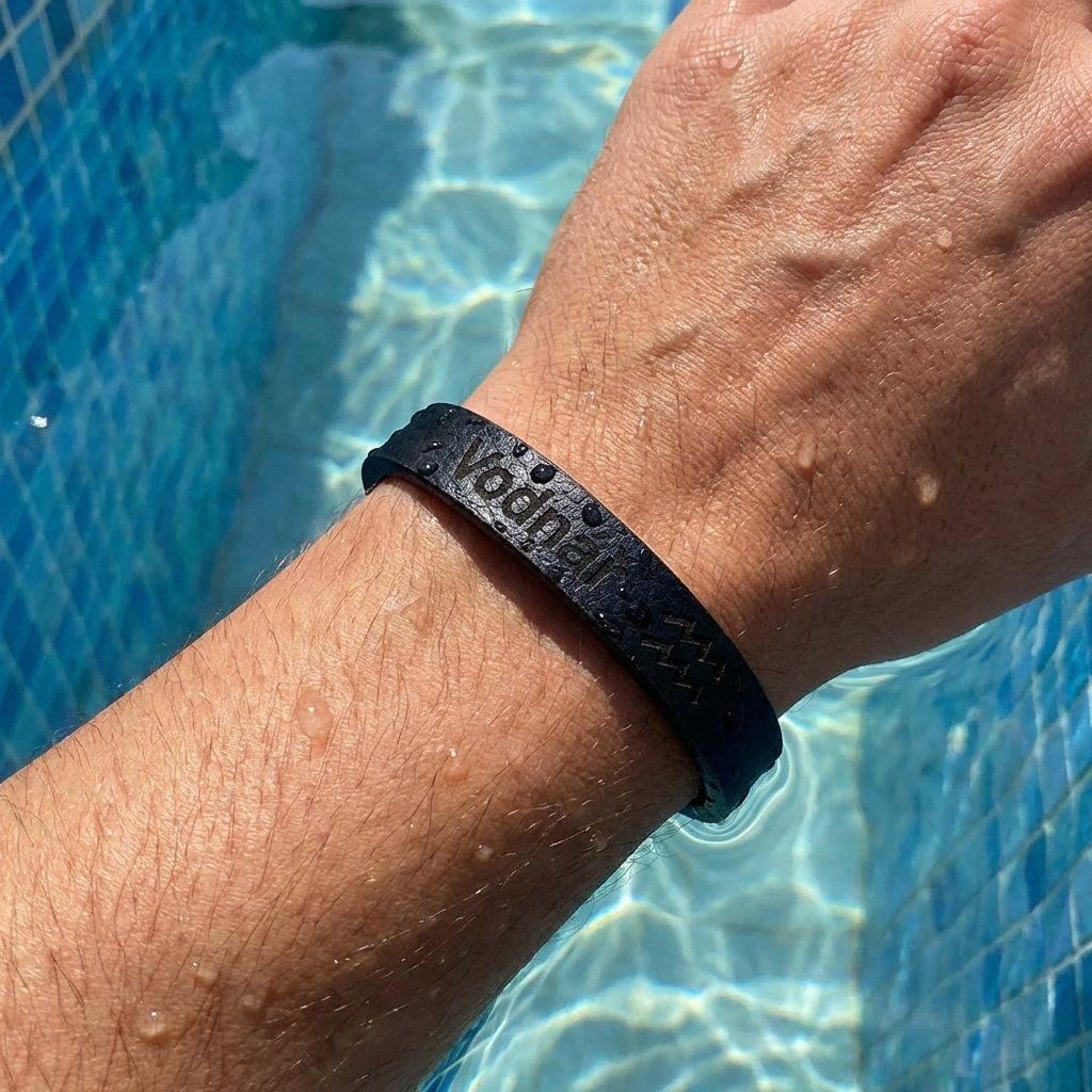 Pánský kožený náramek černý se znamením Vodnář + dárkové balení