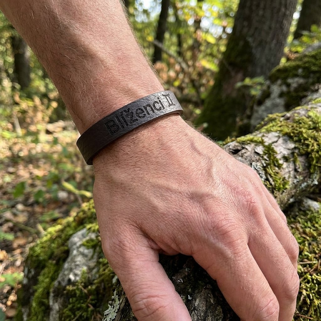Pánský kožený náramek hnědý se znamením Blíženci + dárkové balení