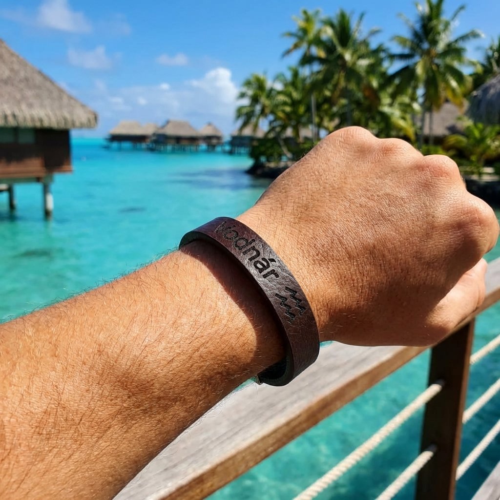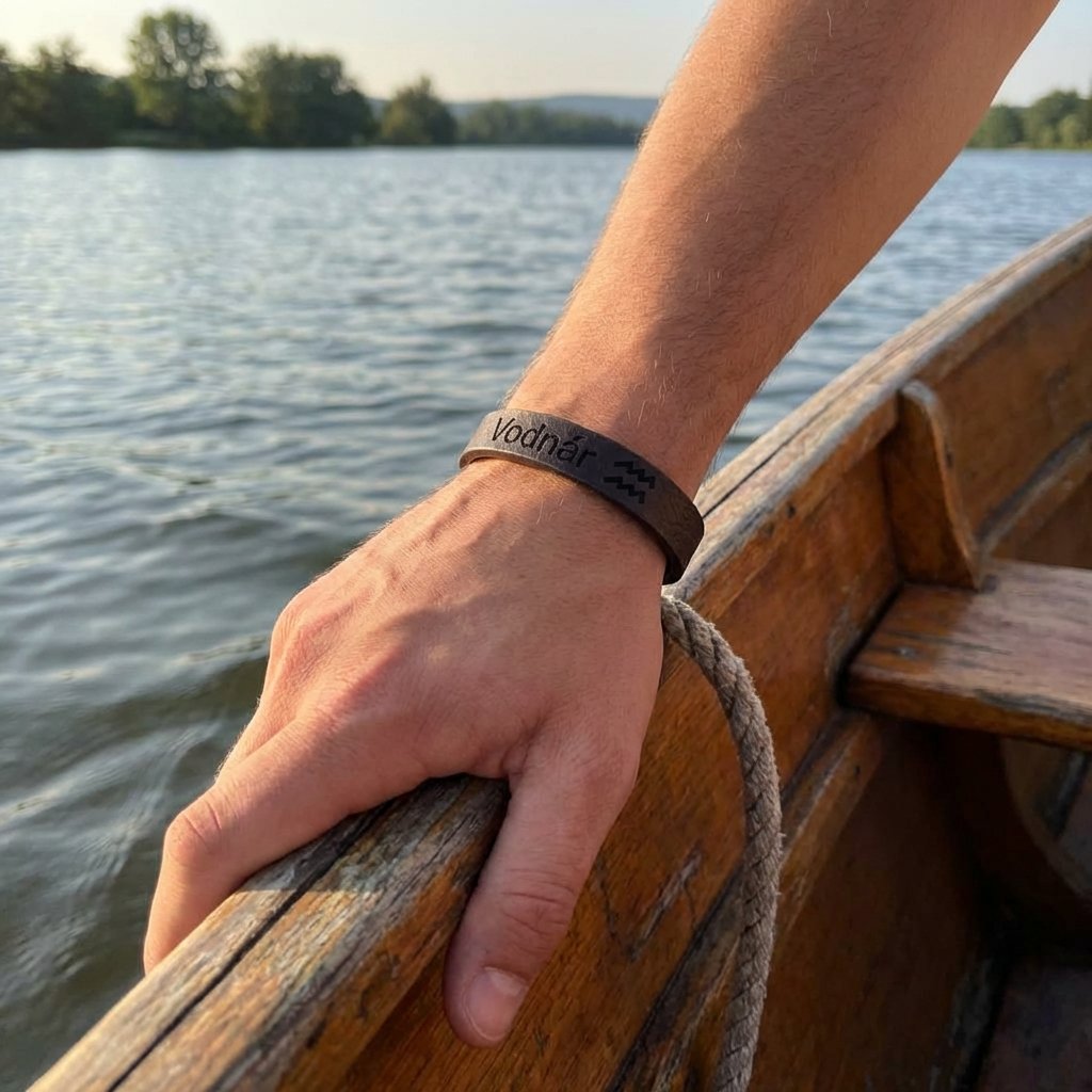 Pánský kožený náramek hnědý se znamením Vodnár + dárkové balení