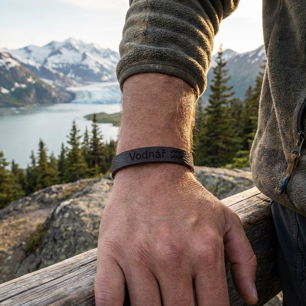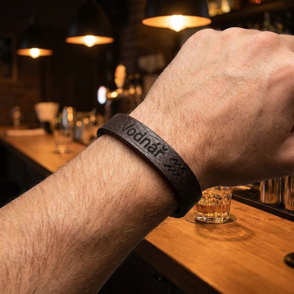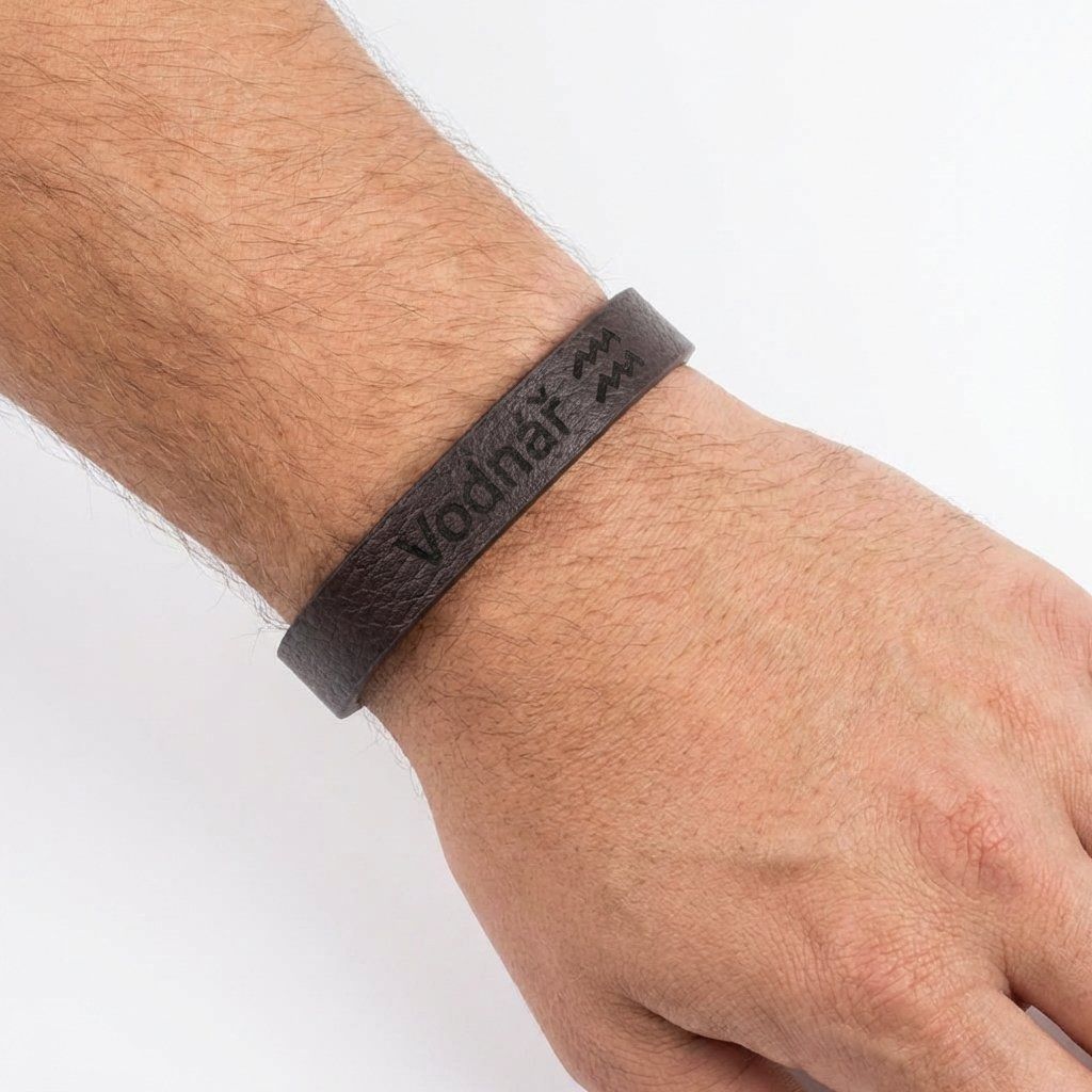 Pánský kožený náramek hnědý se znamením Vodnář + dárkové balení