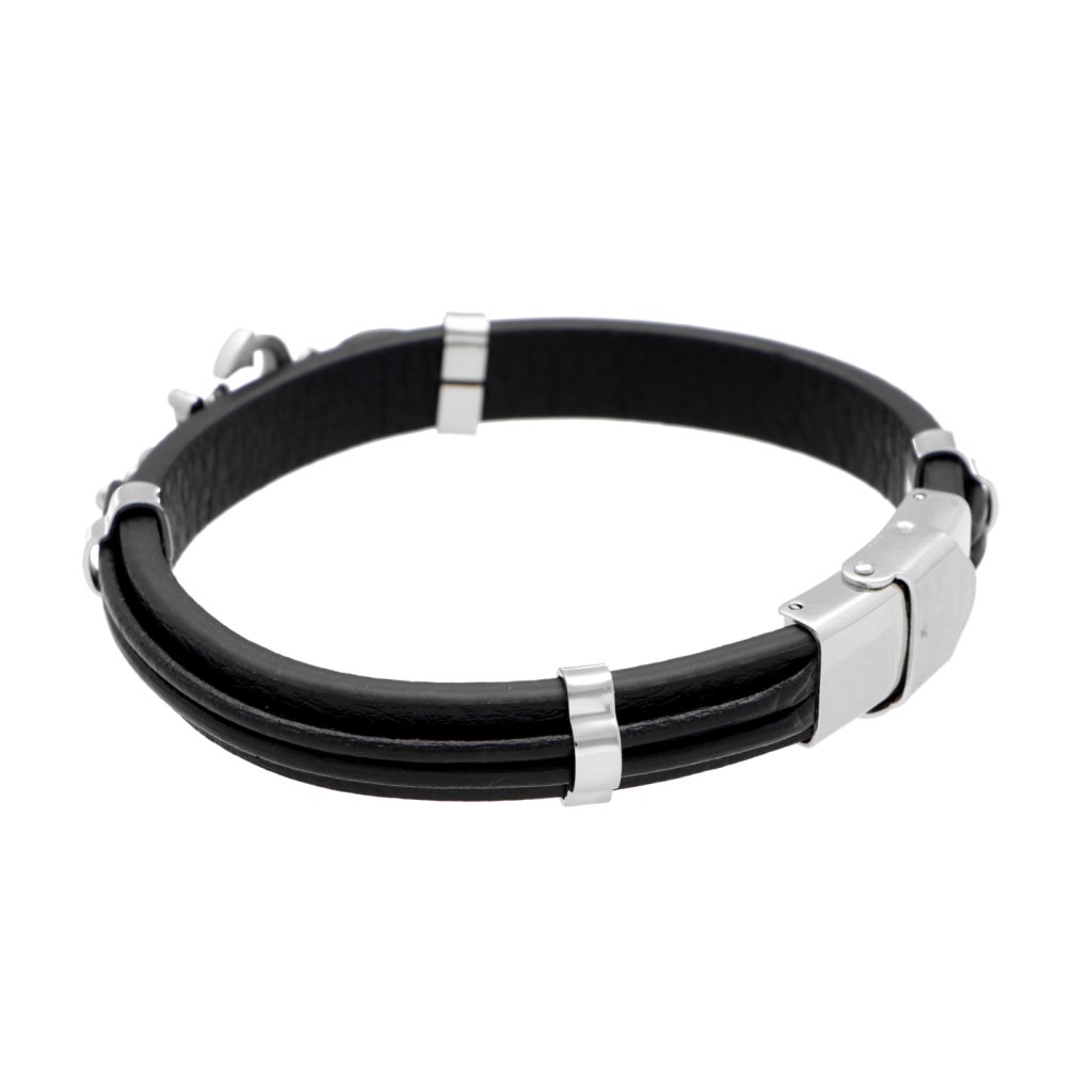 - náramek v kombinaci černé kůže a chirurgické oceli ve stříbrné barvě,