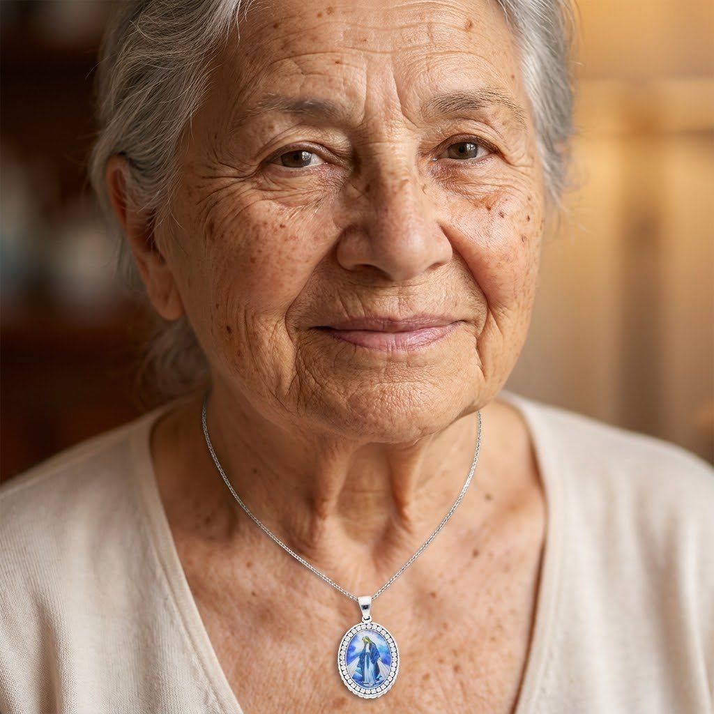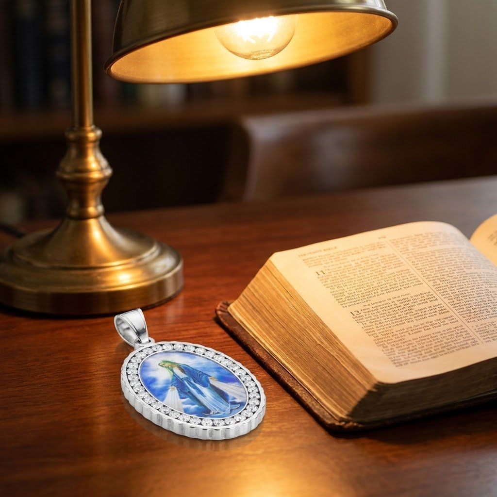 Motiv Panny Marie přináší duchovní hodnoty a ochranu, což dělá šperk zvláštním. Precizní zpracování