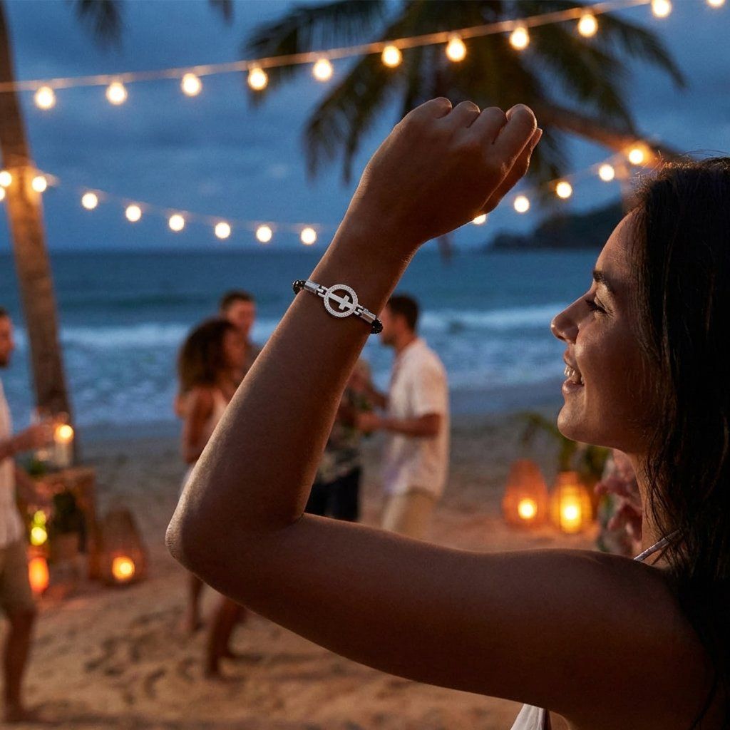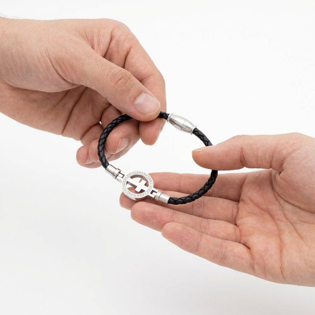 Magnetické zapínání umožňuje rychlé a bezpečné nasazení i sundání náramku. Univerzální velikost