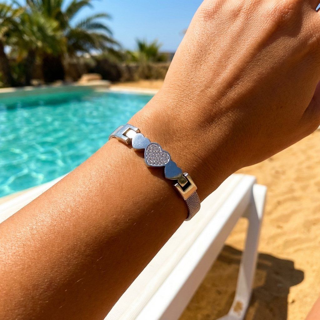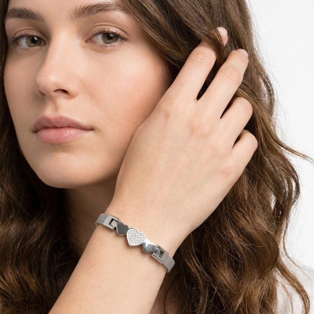 Náramek stříbrný z chirurgické oceli srdíčka + dárkové balení