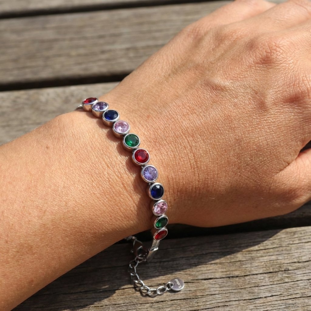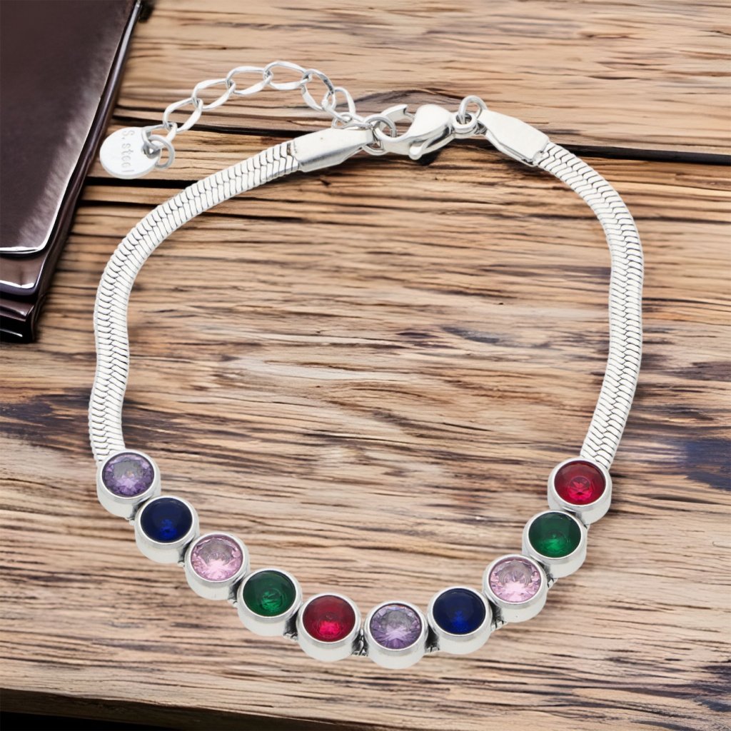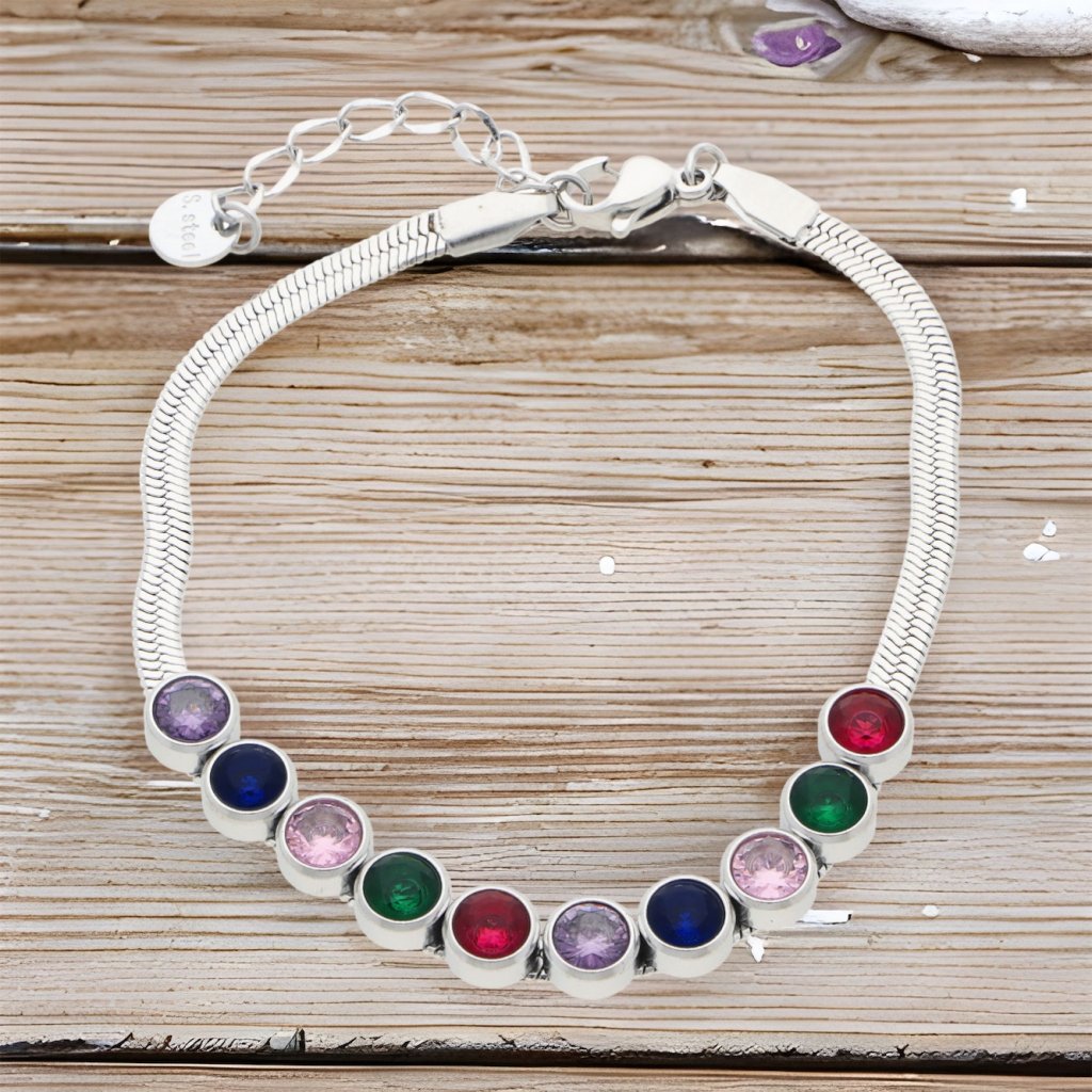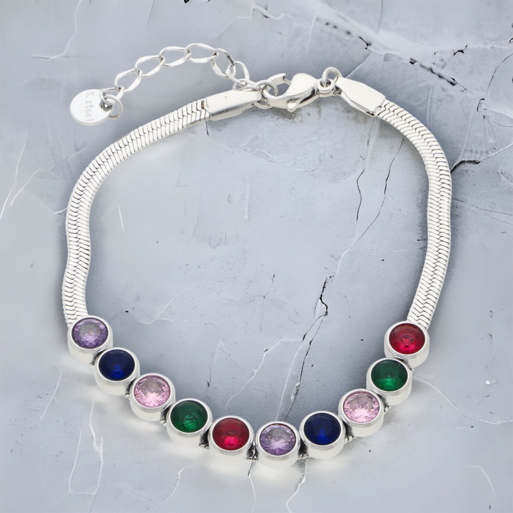 Dámský náramek stříbrný z chirurgické oceli barevný Akada + dárkové balení
