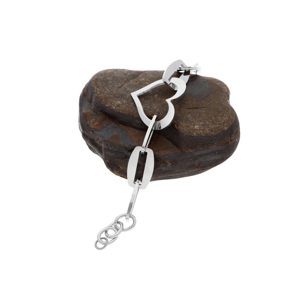 Náramek ocelový srdce. Obvod náramku lze upravit od 19 do 21 cm velikost srdíček 2,5 cm. Materiál: chirurgická ocel. Zrcadlově lesklý.
