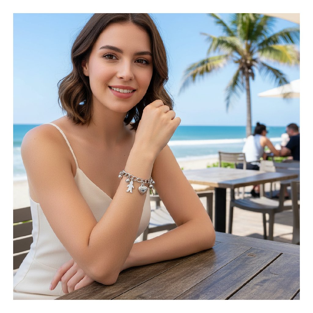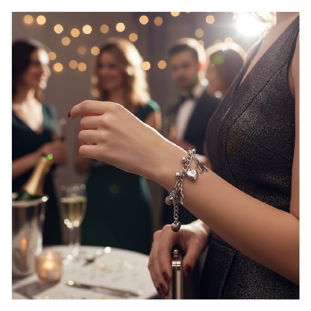 Náramek má motiv srdce, což dodává romantický a elegantní vzhled.