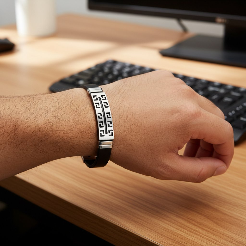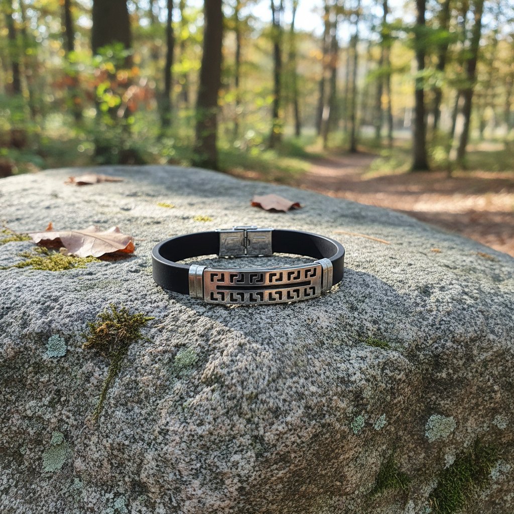 Atraktivní náramky z kaučuku dekorované motivy z chirurgické oceli nejen muže.
