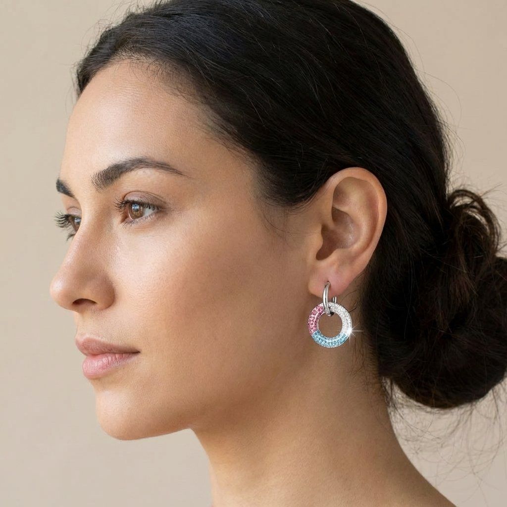 Náušnice barevné kolečka z chirurgické oceli se zirkony + dárkové balení