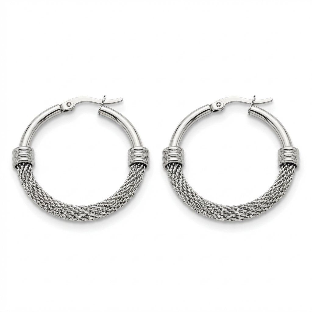 Náušnice ocelové kruhy 2,5 cm. Silnější spletená část náušnic má tloušťku 4 mm. Jsou velmí pěkné a elegantní.