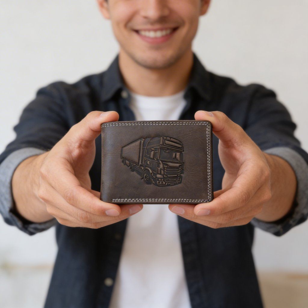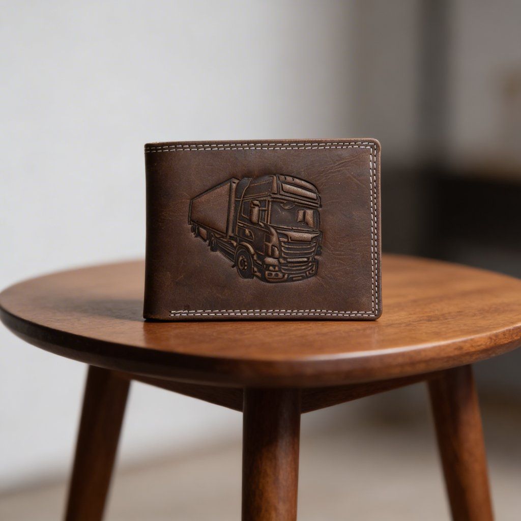 Pánská kožená peněženka černá s motivem Kamión