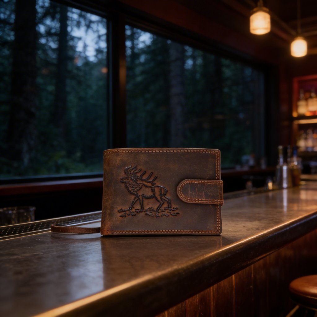 Pánská kožená peněženka hnědá s motivem Jelena