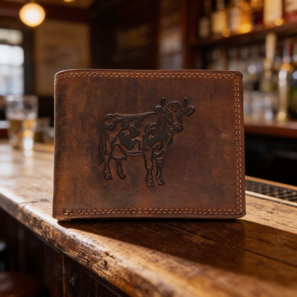 Pánská kožená peněženka hnědá s motivem Kravičky