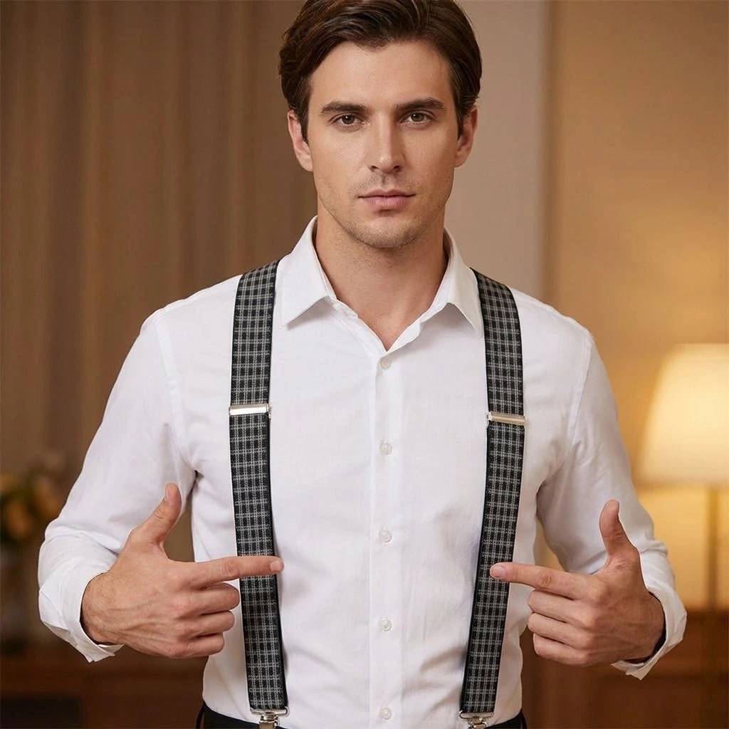 Kšandy pánské, černo - bíle káro MB2036