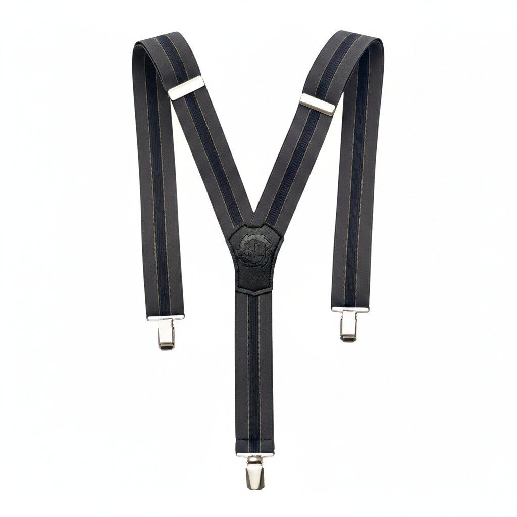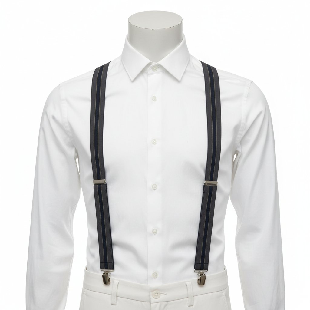 Kšandy v modro-šedém proužku dodají vašemu outfitu styl a eleganci. Kvalitní materiál