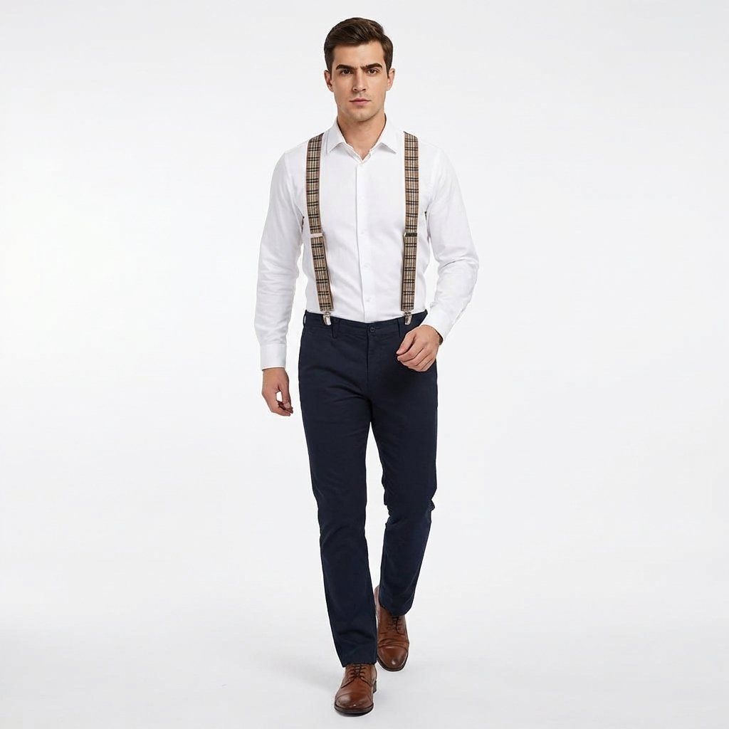 Kšandy pánské, šedo - hnědé káro MB2035