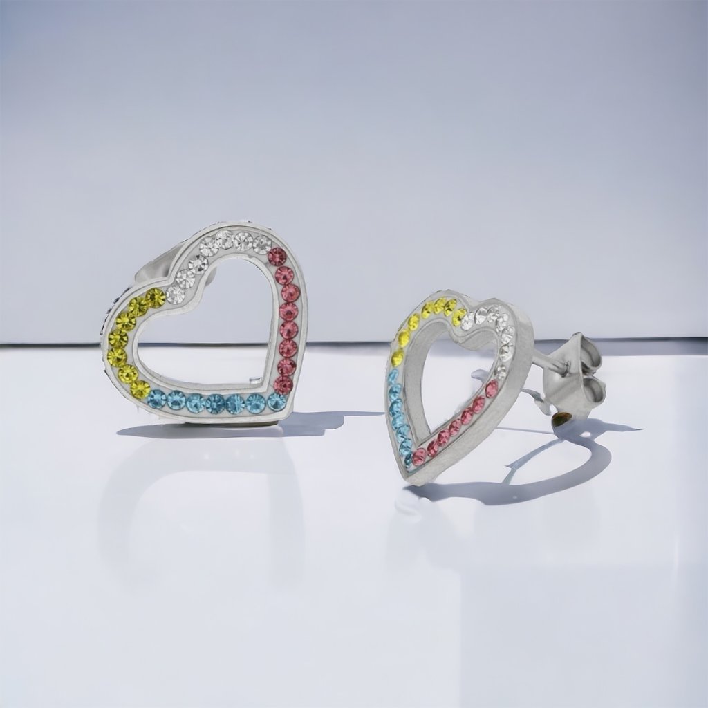 Náušnice srdíčka s kamínky z chirurgické oceli CKR770