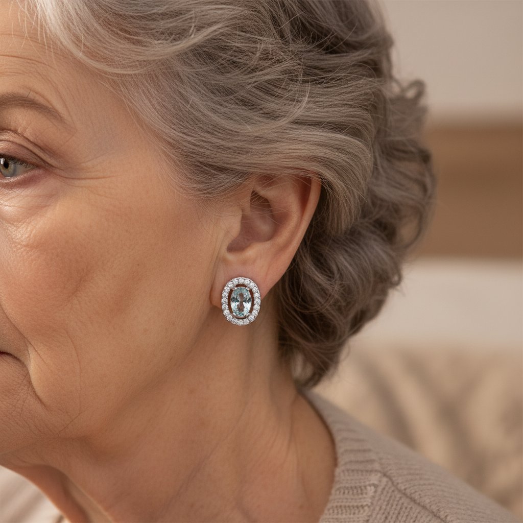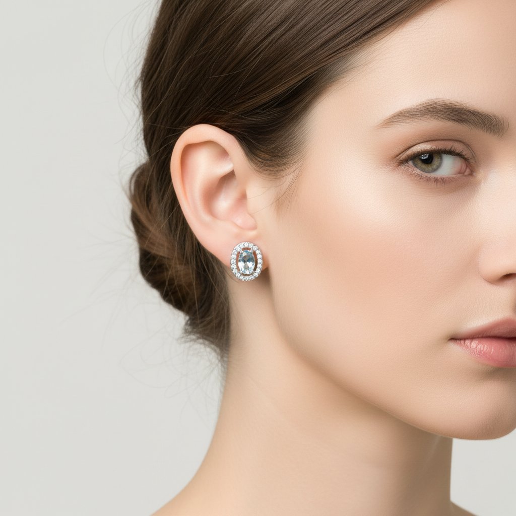 Ocelové náušnice se světle modrým zirkonem -Nerina-EW 327