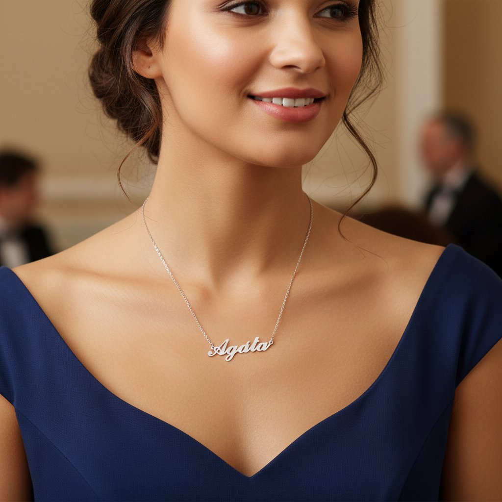 Řetízek z oceli se jménem Agáta stříbrný + dárkové balení