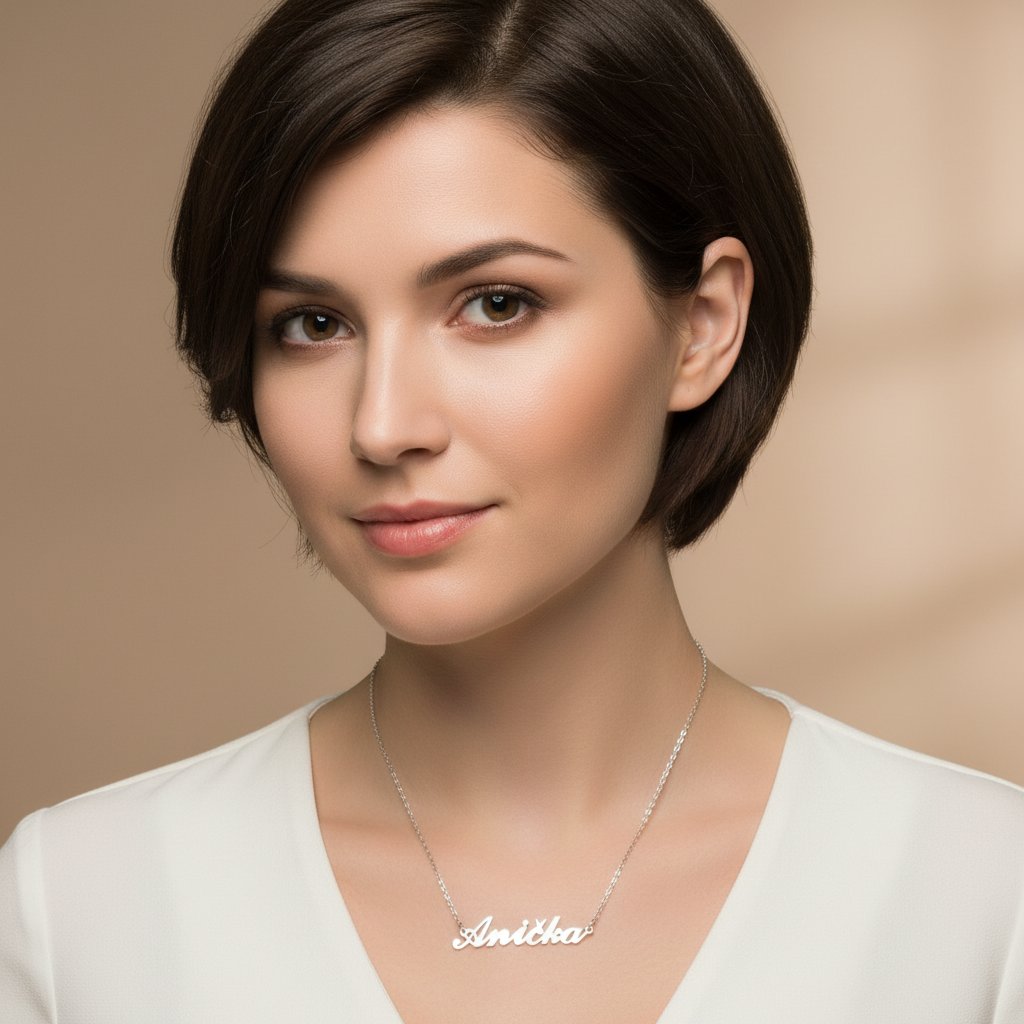 Řetízek z oceli se jménem Anička stříbrný + dárkové balení