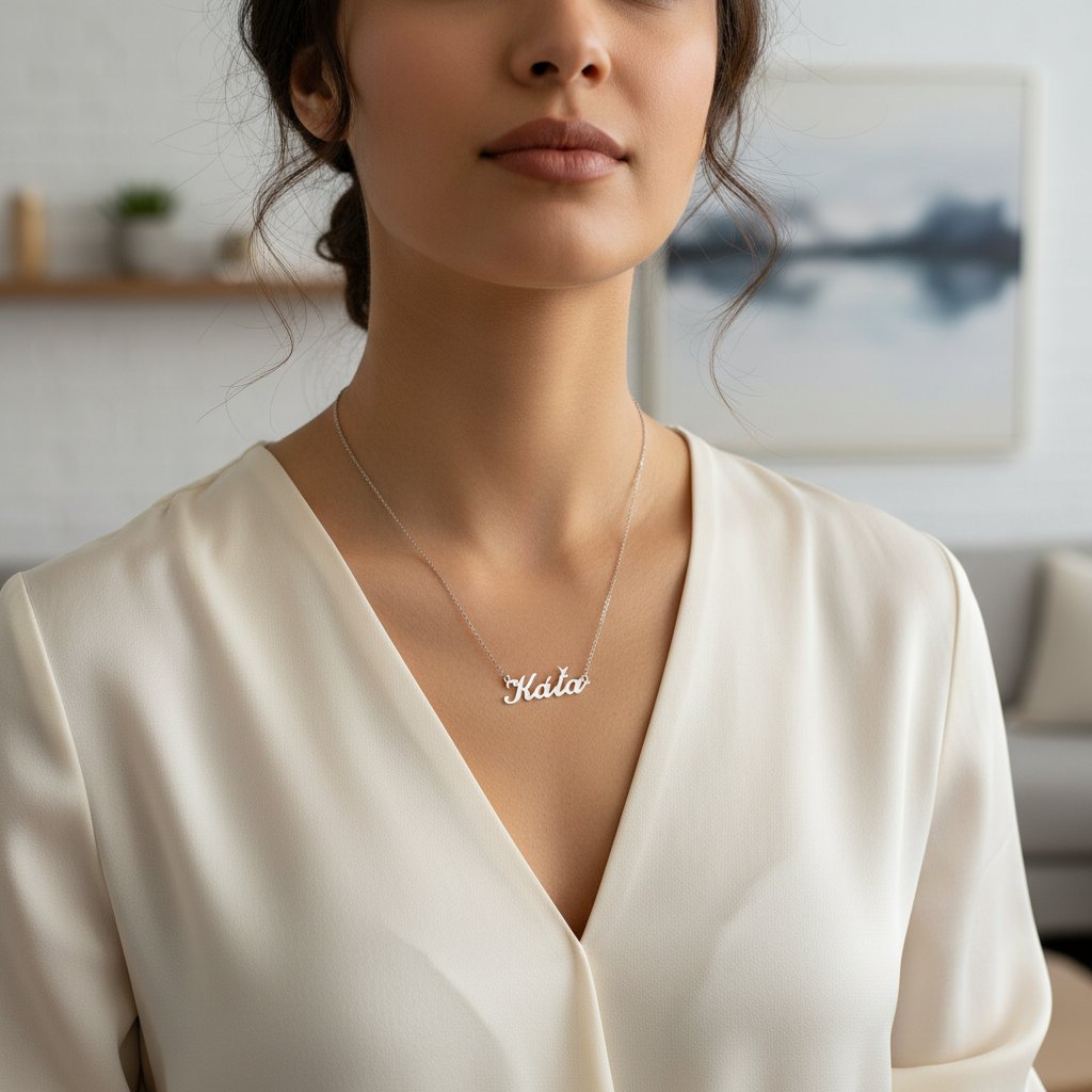Řetízek z oceli se jménem Káťa stříbrný + dárkové balení