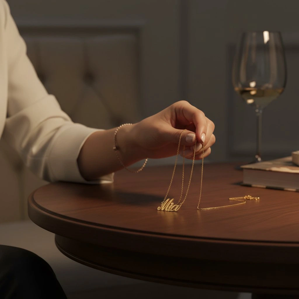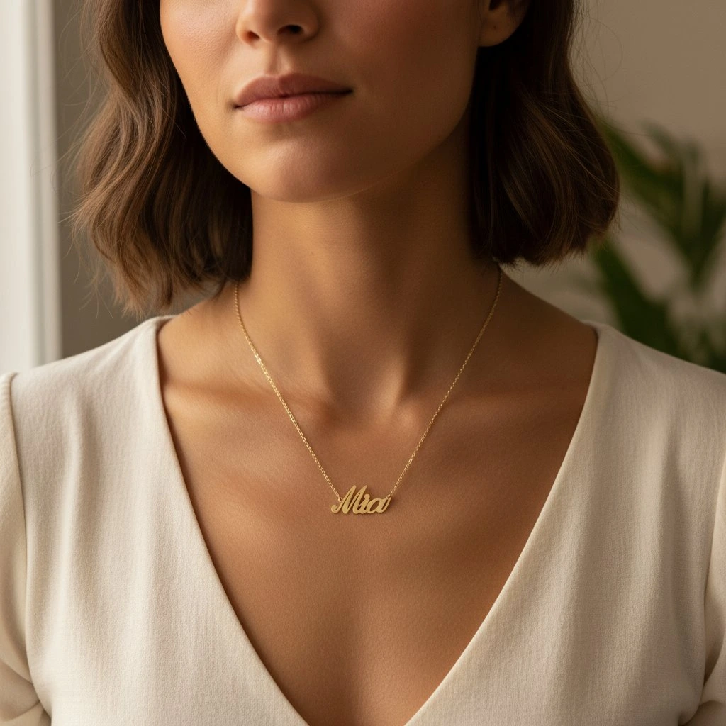 Řetízek z oceli se jménem Mia zlatá ocel