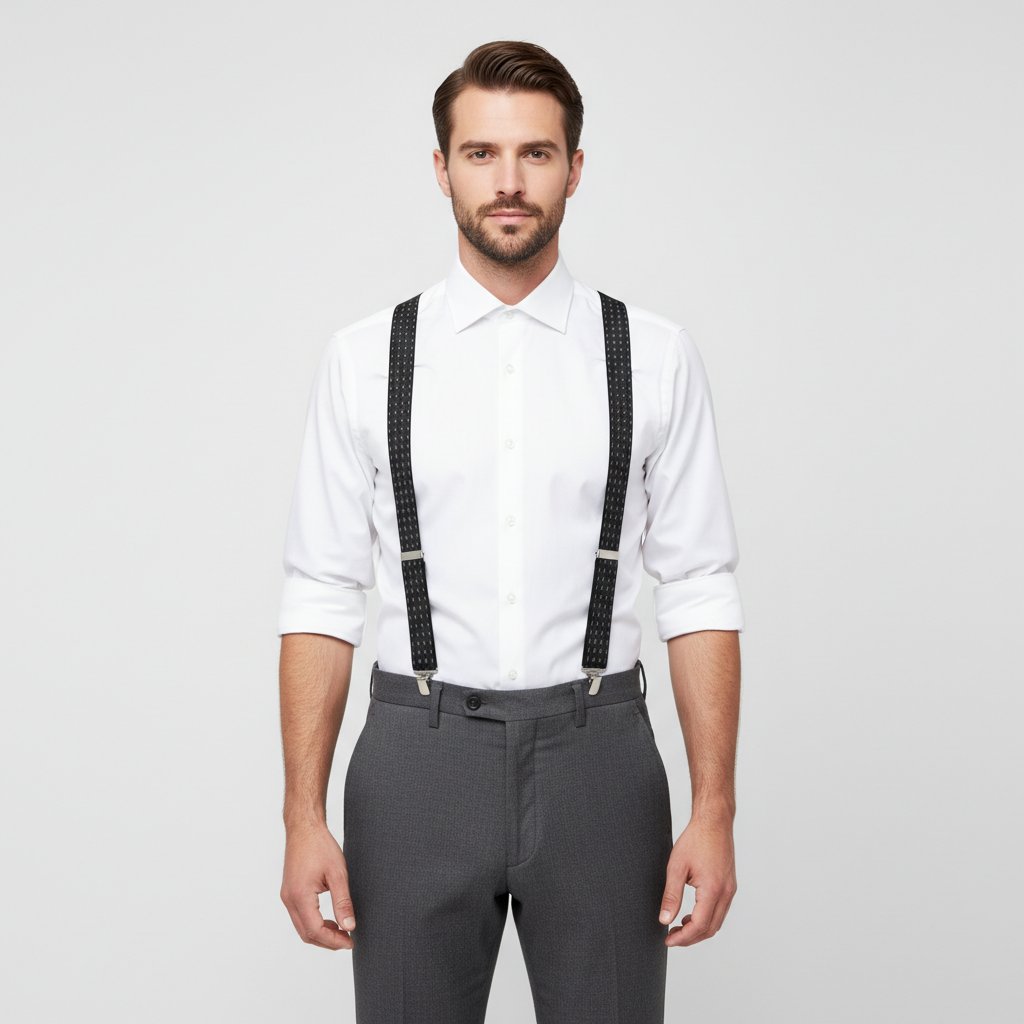 Vhodné pro pracovní i společenské příležitosti díky svému univerzálnímu vzhledu. Jak se kšandy uchycují ke kalhotám?