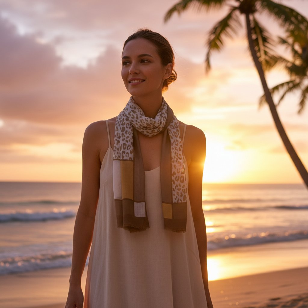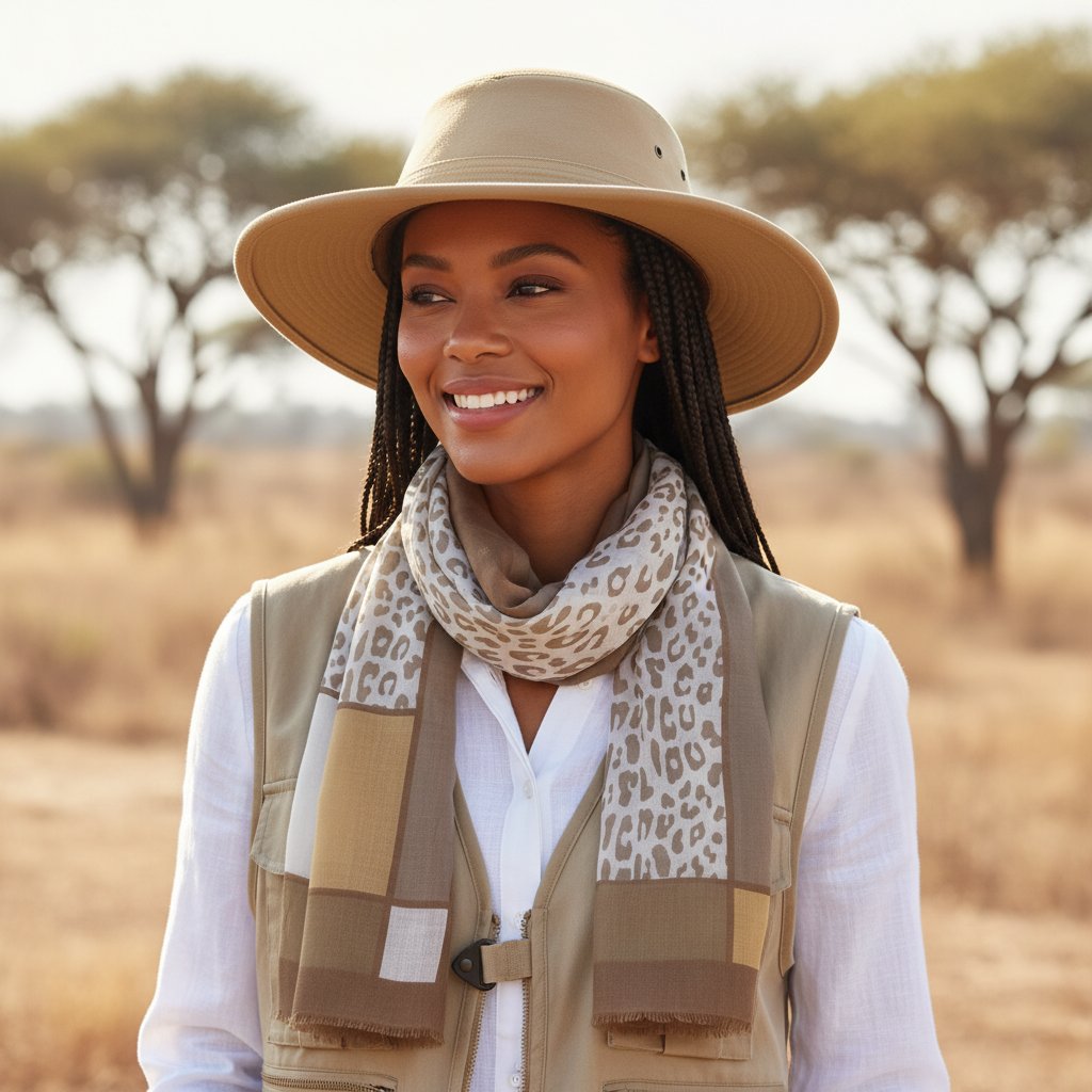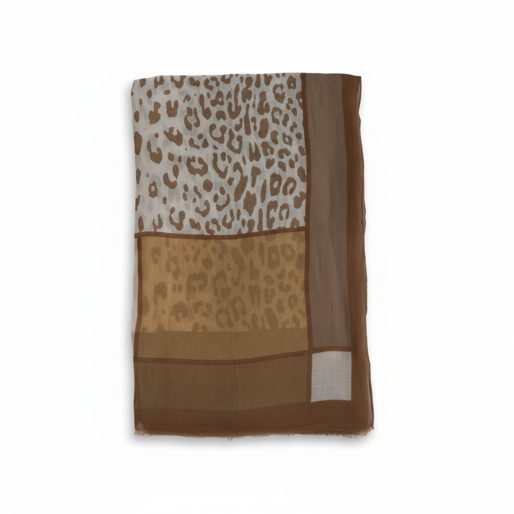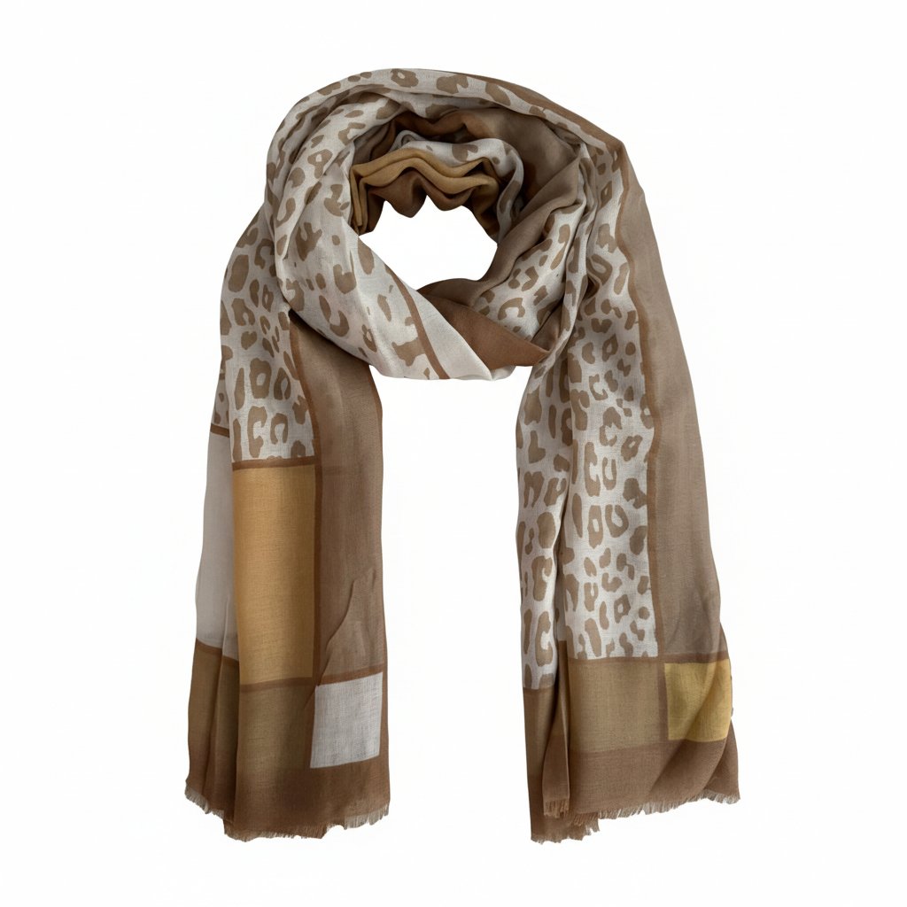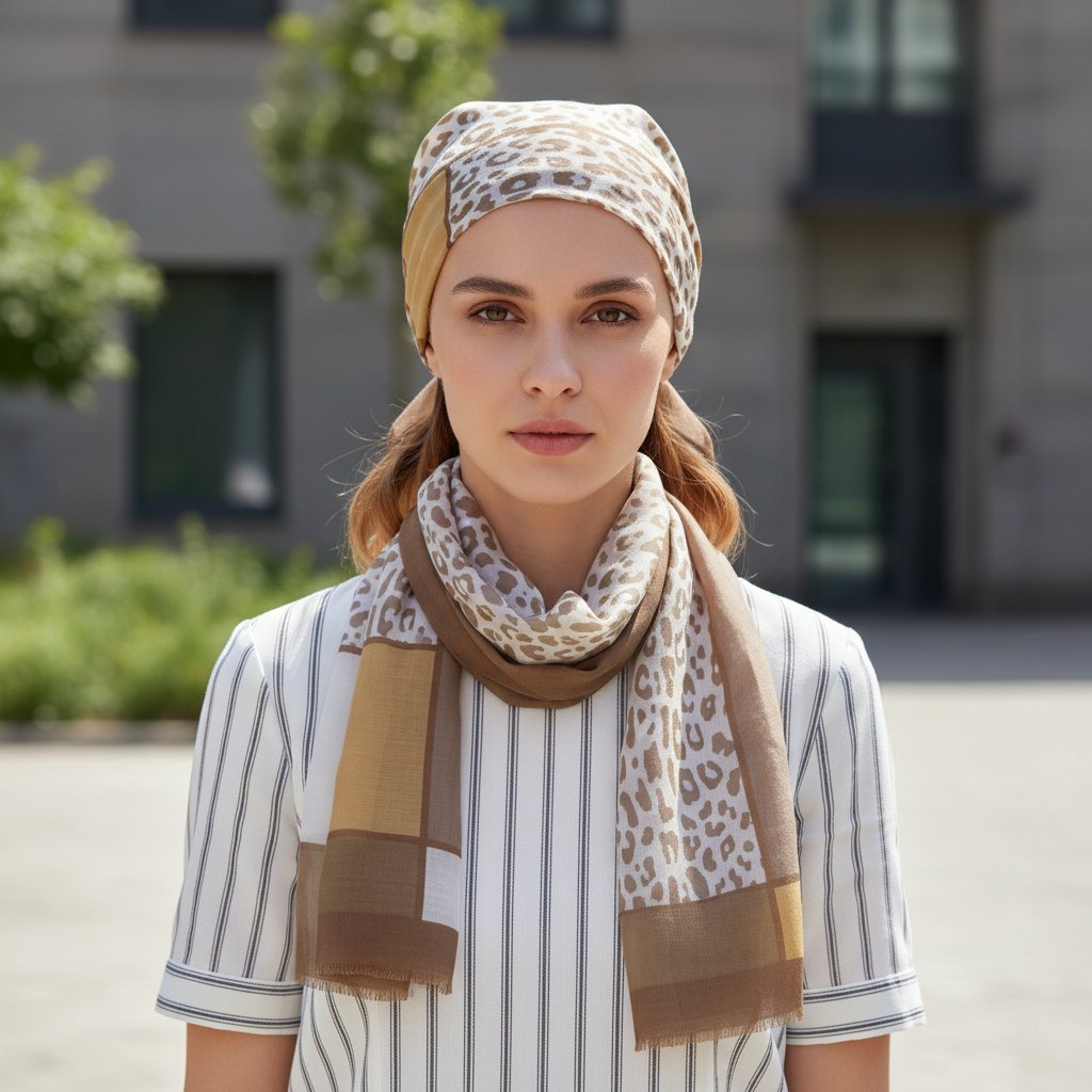 Šátek nabízí výrazný zvířecí vzor s geometrickým kontrastem, což jej činí jedinečným na trhu. Všestranné použití